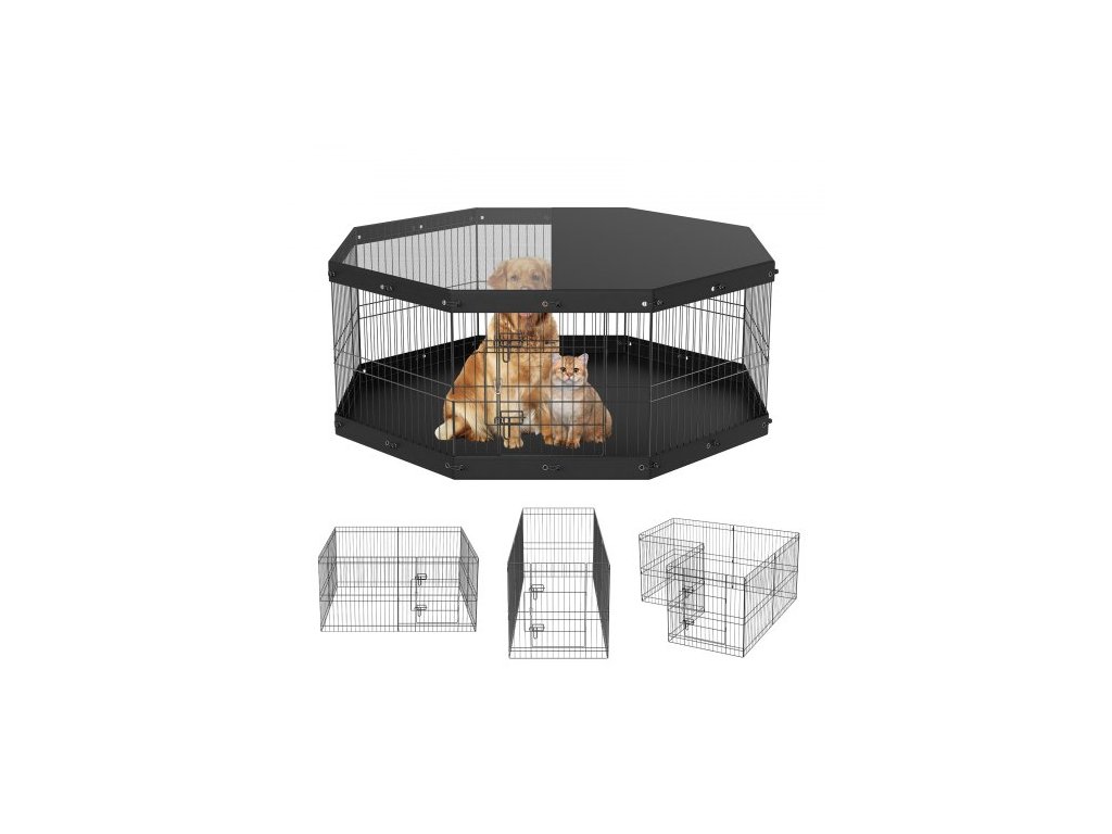 Psí ohrádka, 8dílná skládací kovová cvičební ohrada pro psy s horním krytem a spodní podložkou, 61 cm V plot pro domácí mazlíčky, psí ohrádka s plotem pro štěňata, vnitřní a venkovní psí ohrádka pro malé a střední domácí mazlíčky, pro kempování, na zahraduNastavitelná kovová ohrádka pro domácí mazlíčky 24"
