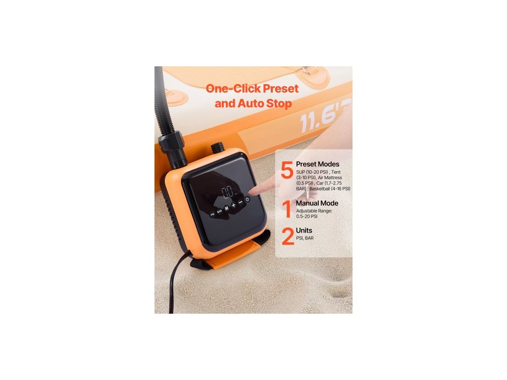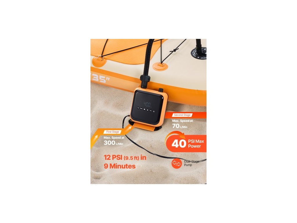 Pumpa na paddleboard , vysokotlaká 40PSI, dvoustupňové nafukování a vyfukování SUP s funkcí automatického vypnutí a 12V DC konektorem do auta, ideální pro nafukovací paddleboard, stan a matraci