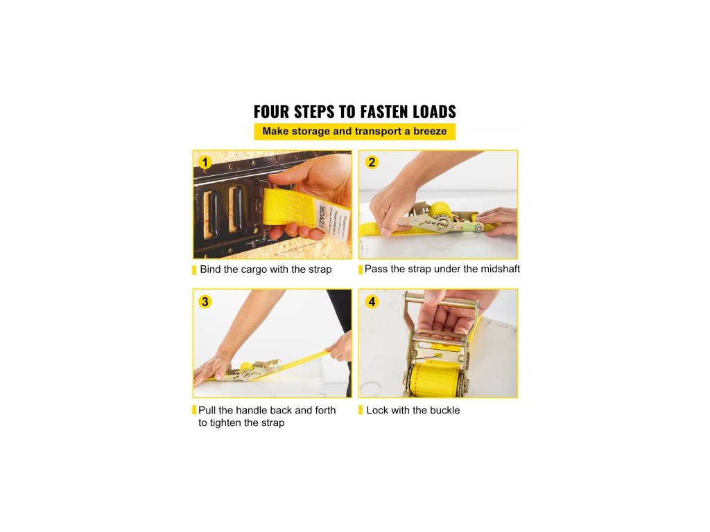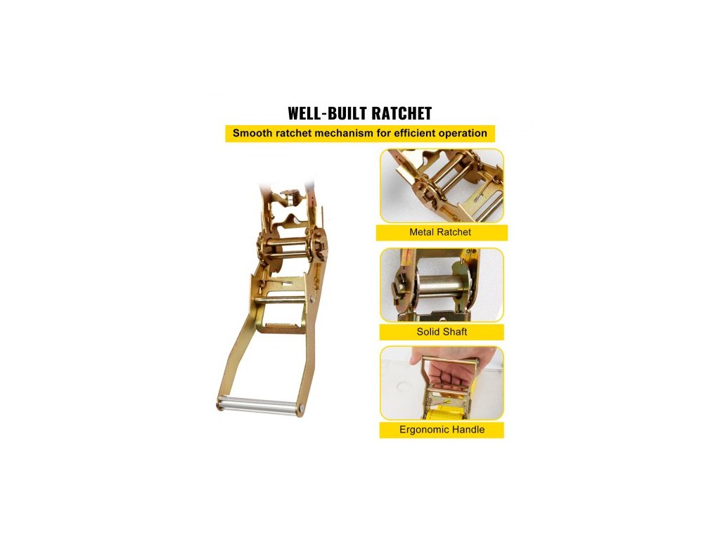 Bezpečné pracovní zatížení: 1460 lbs / 660 kg,Max. pevnost v tahu: 4400 lbs / 2 000 kg,Barva: Žlutá,Model: VV-RS-TD1815,Hmotnost výrobku: 18 kg / 39,68 lbs,Materiál: Legovaná ocel, Polyester,Rozměry popruhu: 15 stop x 2 palce / 4,57 m x 5 cm