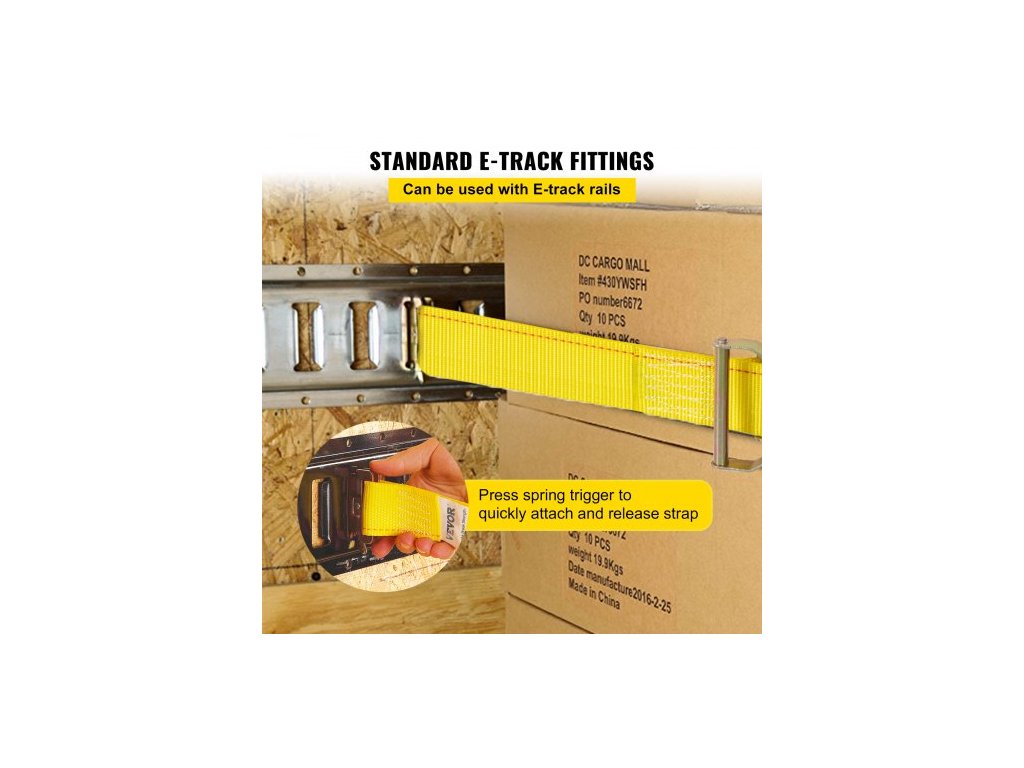 Ráčna E-Track, balení 18 kusů popruhů E-Track 2" x 15', pevnost v tahu 4400 lbs, s polyesterovým popruhem a pružinovým upevněním a ráčnami, odolné upevnění pro motocykly, pneumatiky, přívěsyVyrobeno pro E-Tracks