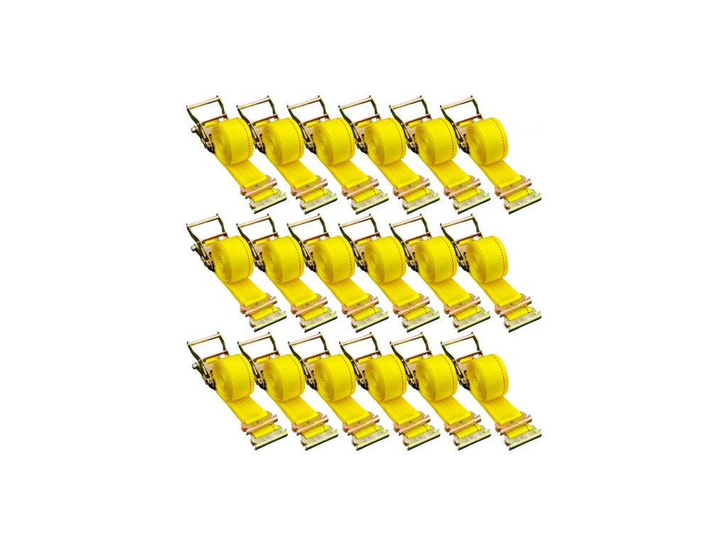 Ráčna E-Track, balení 18 kusů popruhů E-Track 2" x 15', pevnost v tahu 4400 lbs, s polyesterovým popruhem a pružinovým upevněním a ráčnami, odolné úchyty pro motocykly, pneumatiky a přívěsy