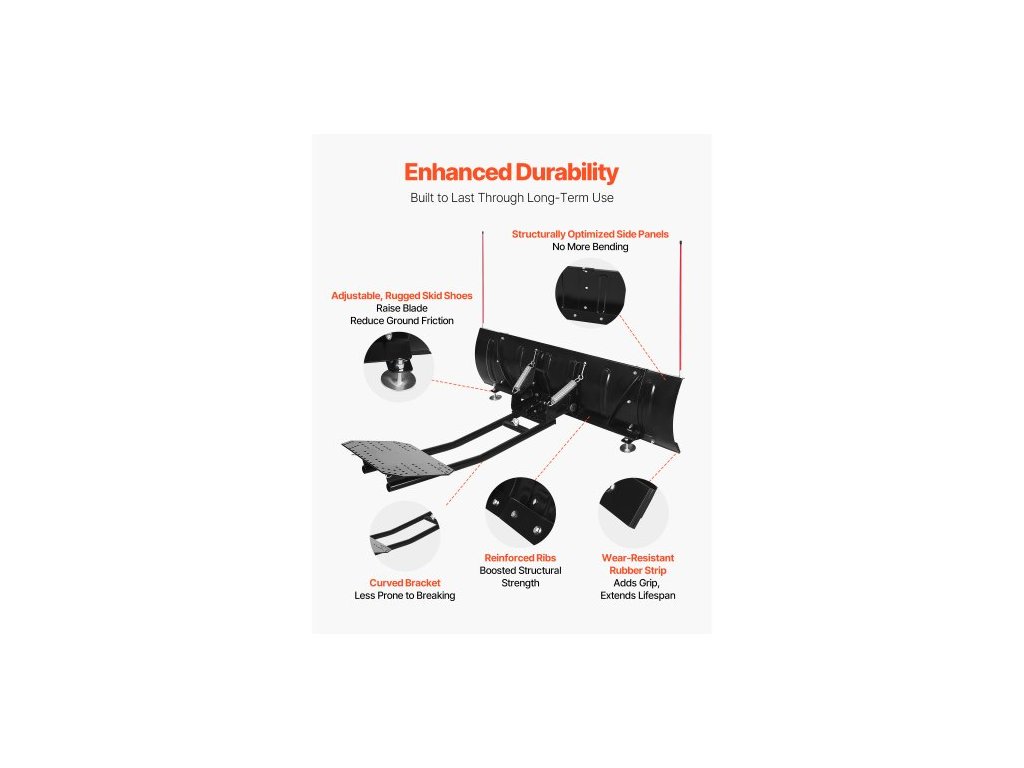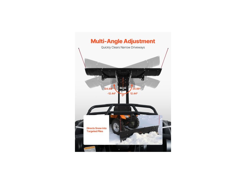 Radlice na sněžný pluh , nastavitelná šířka 109/183 cm, snadno odnímatelná, univerzální držák pluhu s gumovými chlopněmi, odolná ocelová radlice, kompatibilní s většinou UTV a ATVReflexní značení pro noční použití