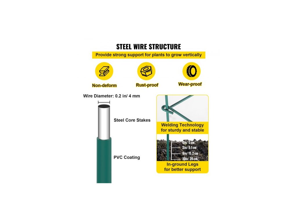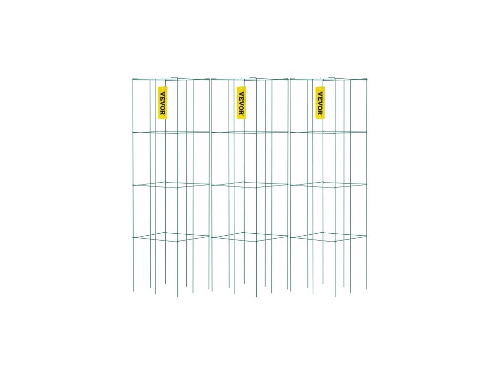 Nosnost: 10 kg,Rozměry výrobku (D x Š x V): 37 x 37 x 100 cm,Barva: Zelená,Množství: 3 balení,Průměr ocelového kolíku: 4 mm,Model: VV-KZDFQJ14.6X39LS3Z,Materiál: Ocel,Povrchová úprava: PVC Nátěr, Hloubka zapuštění do země: 26 cm, Hmotnost položky: 3,6 kg