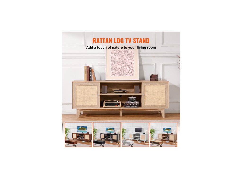Rattan-TV-Ständer 191cm Fernseher Boho-TV-Schrank Fernsehschrank EicheNatürliche Wärme