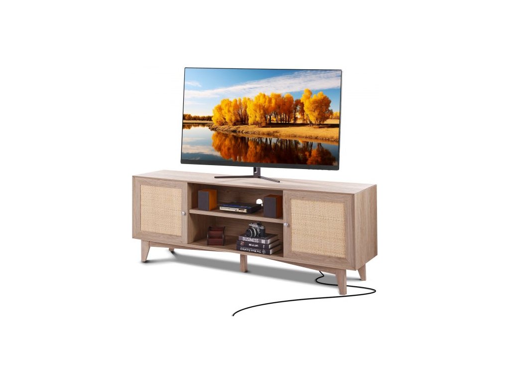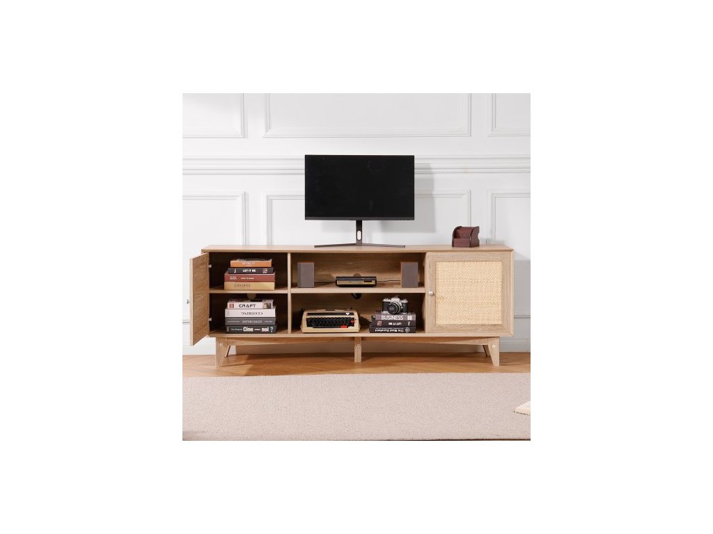 Ratan-TV-Ständer 191cm Fernseher Boho-TV-Schrank Fernsehschrank Eiche