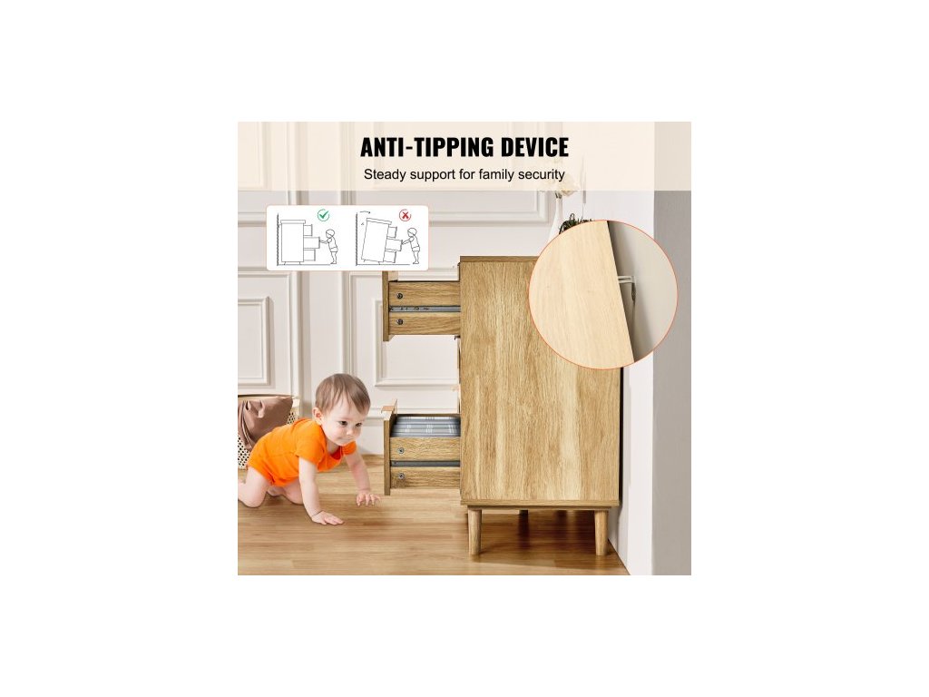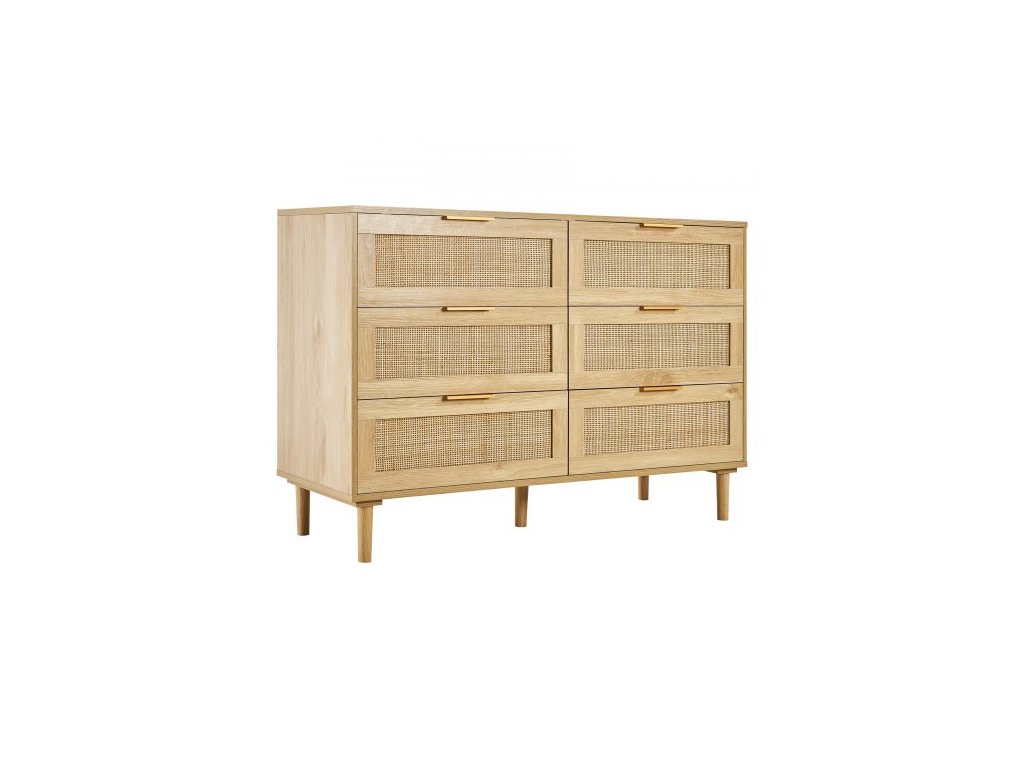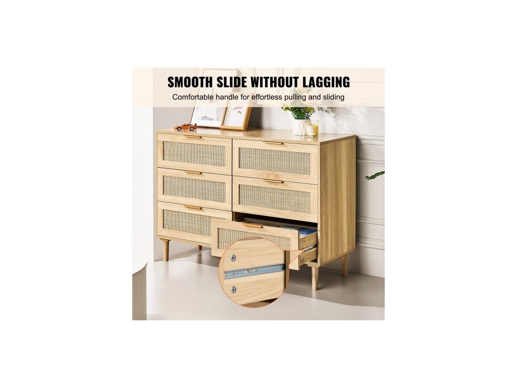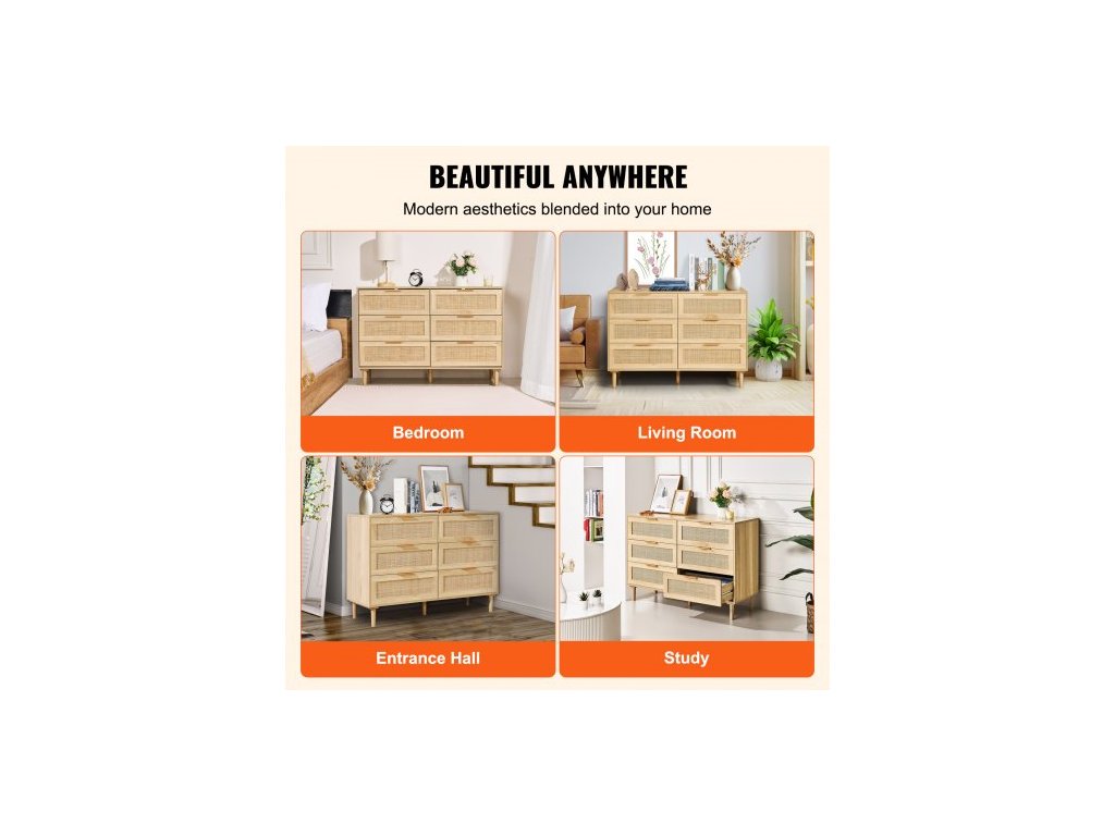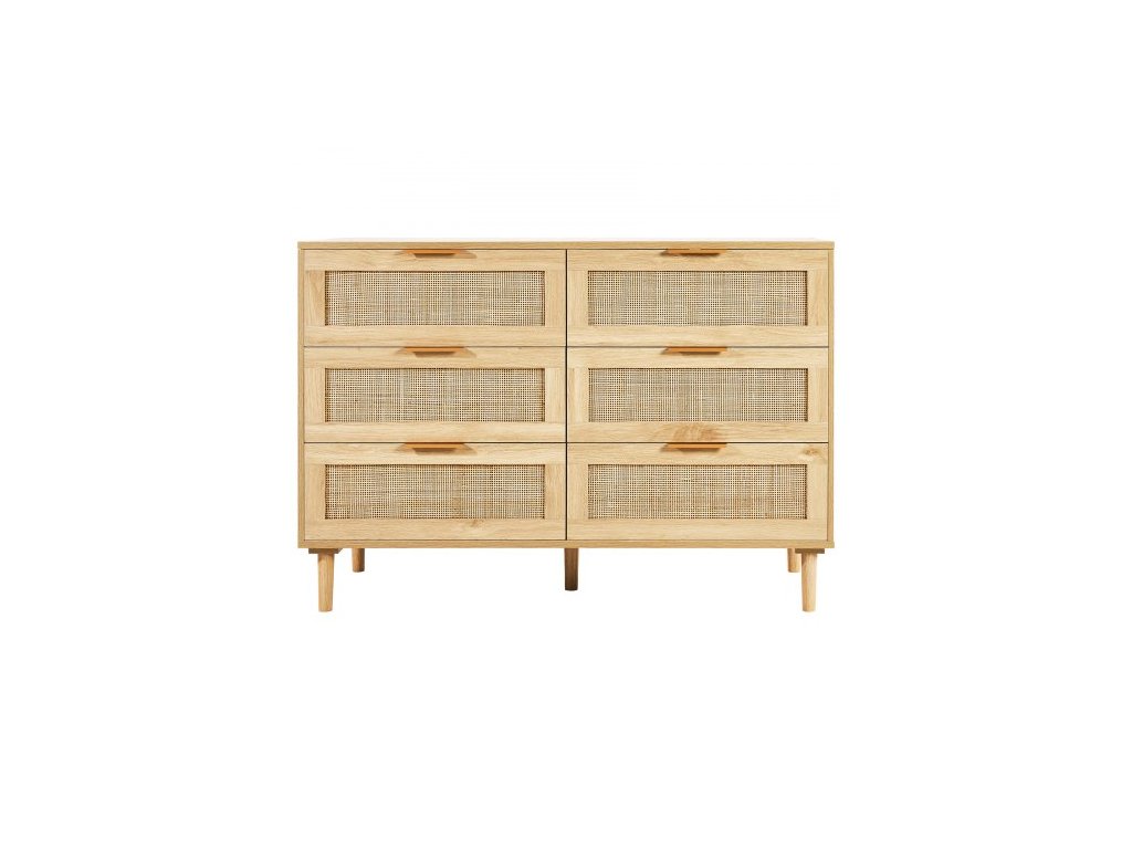 Ratanová komoda se 6 zásuvkami, Boho komoda, Ratanová komoda s prostorným úložným prostorem, Komoda z přírodního ratanu do ložnice, obývacího pokoje a chodby, Ratanový noční stolek s pevnými úchyty a nohami, HnědáDostatek úložného prostoru