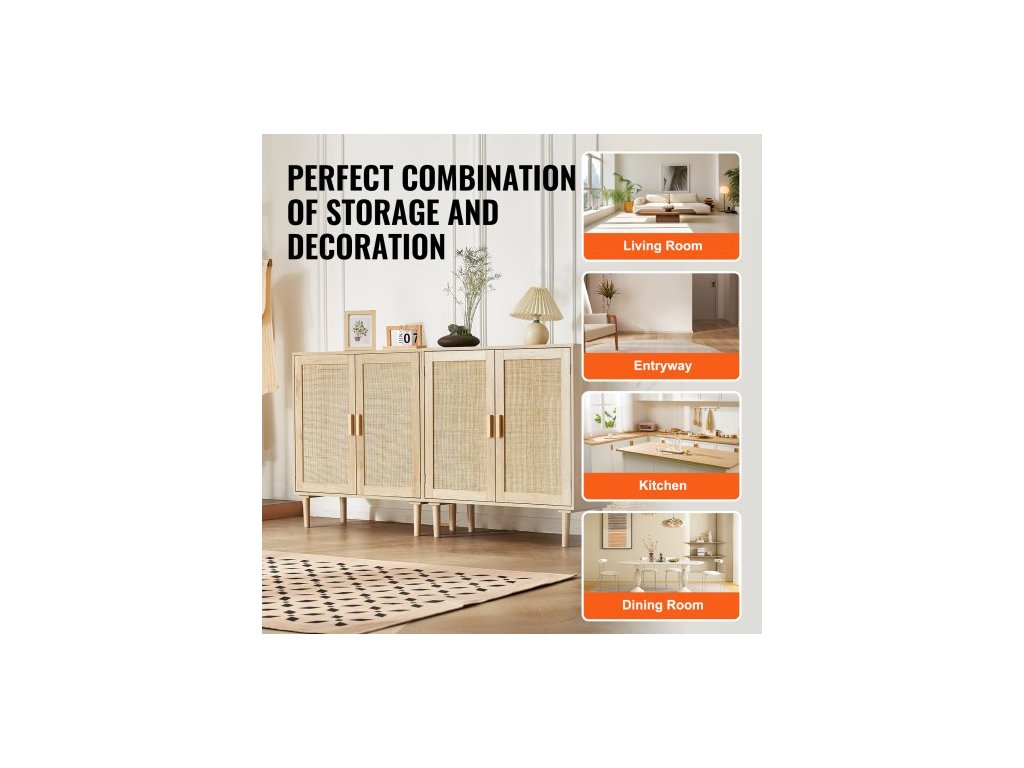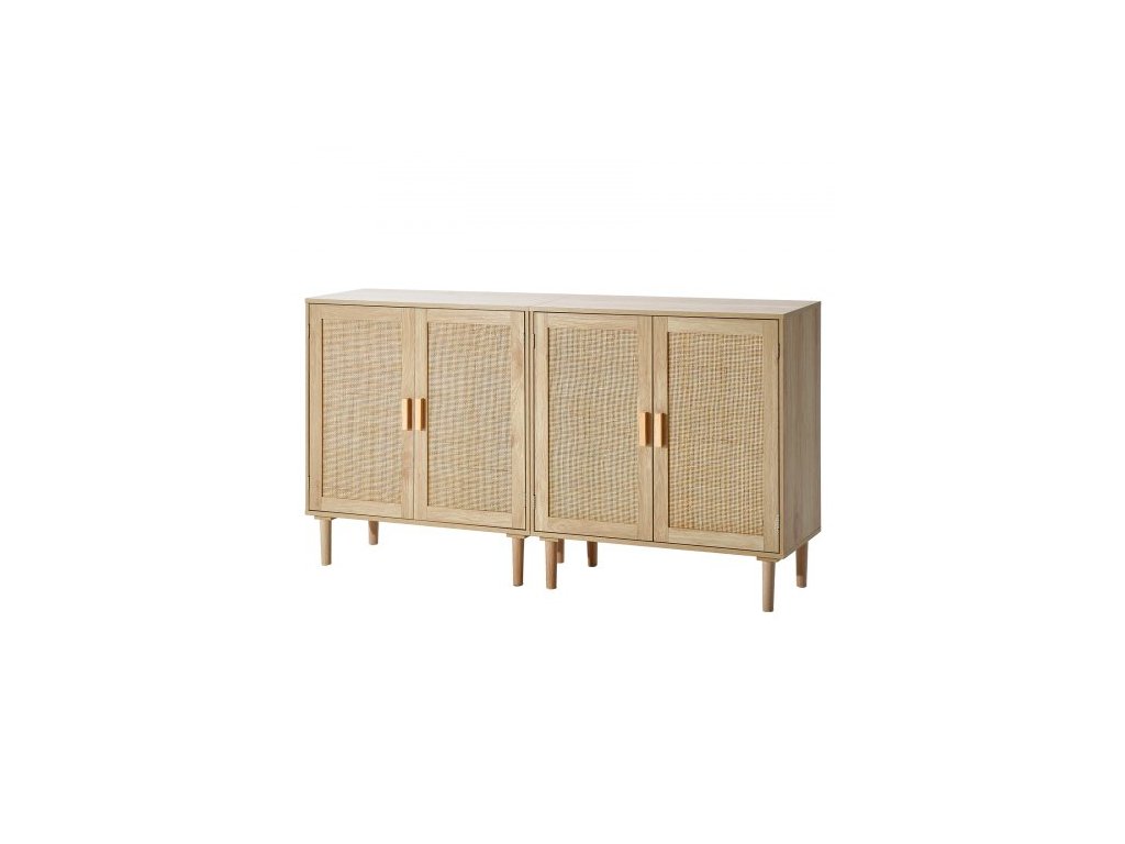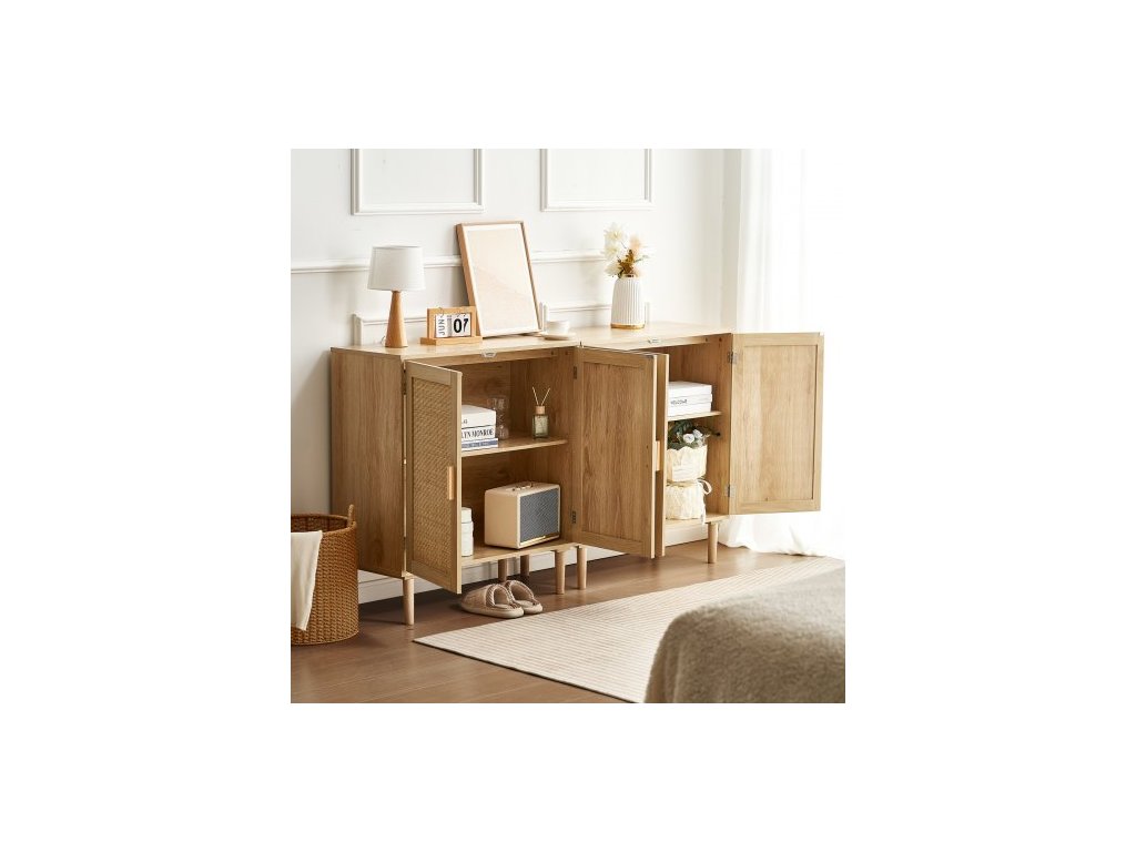 Ratanová skříňka, sada 2 kusů, Ratanová úložná skříňka se 4 magnetickými dvířky a nastavitelnými policemi, Příborník/bufetová skříňka do chodby, vstupní haly, obývacího pokoje nebo kuchyně, PřírodníDekorativní ratanová skříňka