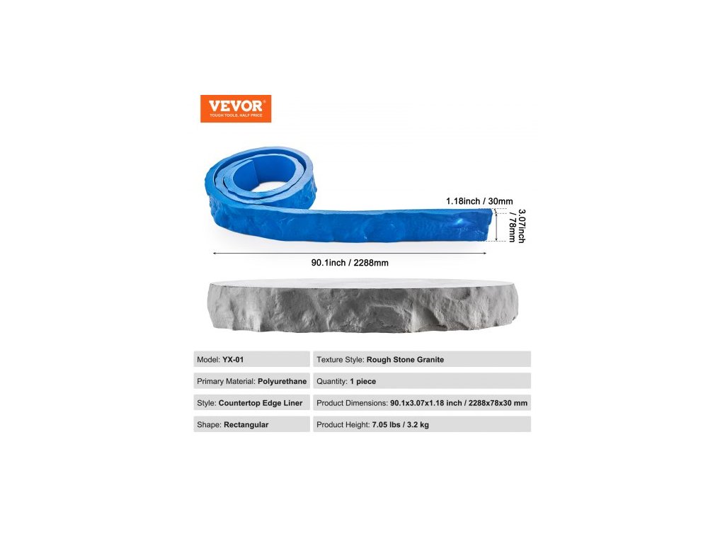 Hlavní materiál: Polyuretan,Tvar: Obdélníkový,Číslo modelu položky: YX-01,Styl textury: Hrubý kámen Žula,Hmotnost výrobku: 7,05 lbs / 3,2 kg,Styl: Okraj pracovní desky,Množství: 1 kus,Rozměry výrobku: 90,1x3,07x1,18 palce / 2288x78x30 mm