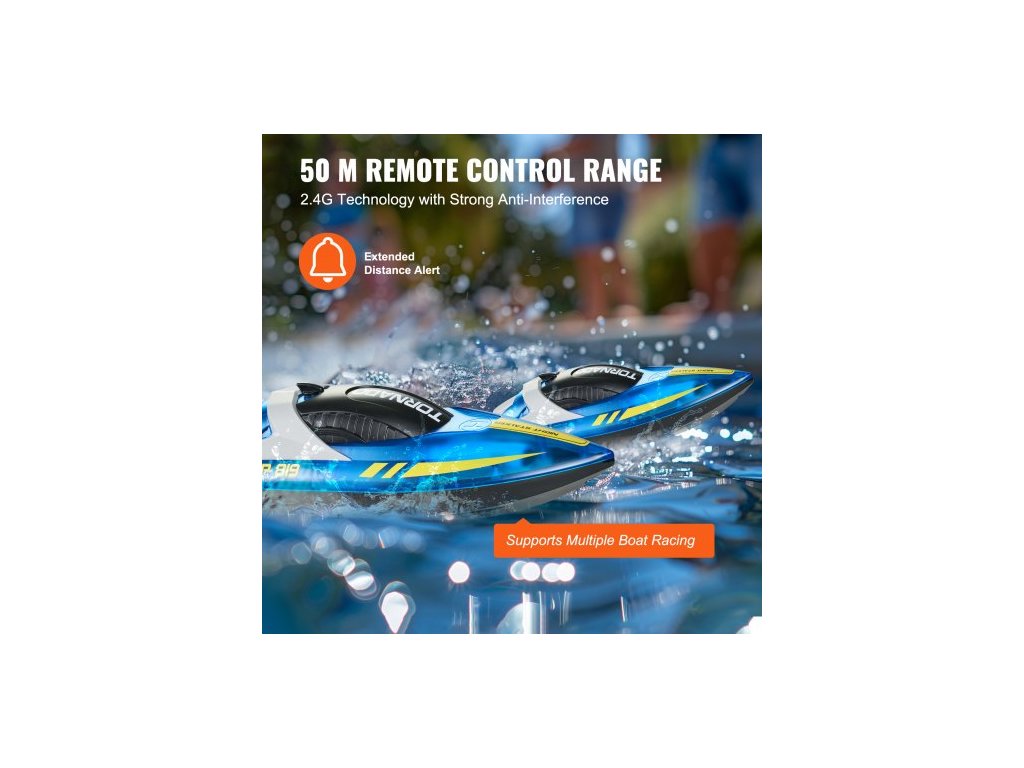 RC člun , 2,4 GHz 12 km/h, dálkově ovládaný člun pro bazény a jezera, závodní člun s LED světlem, 2 dobíjecí baterie, vodotěsný pro celé tělo, vodní hračka jako dárek pro dospělé, chlapce a dívky, modrý