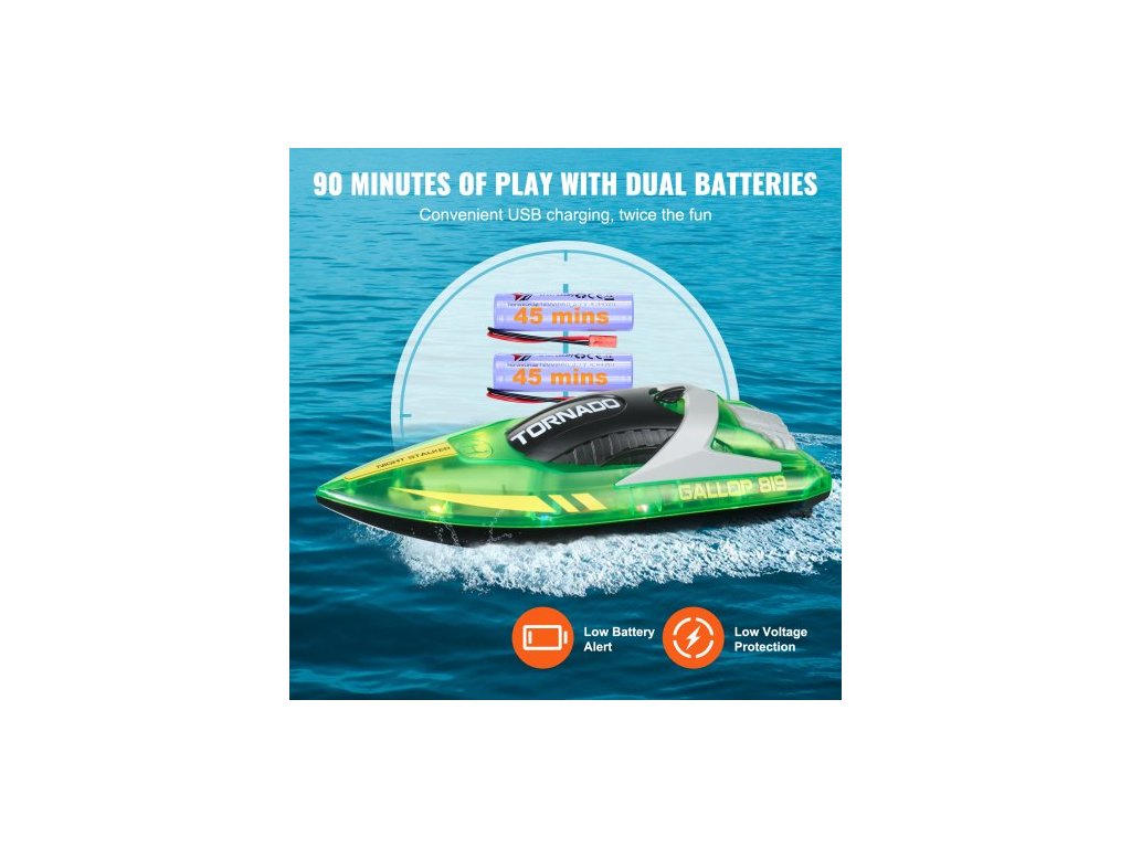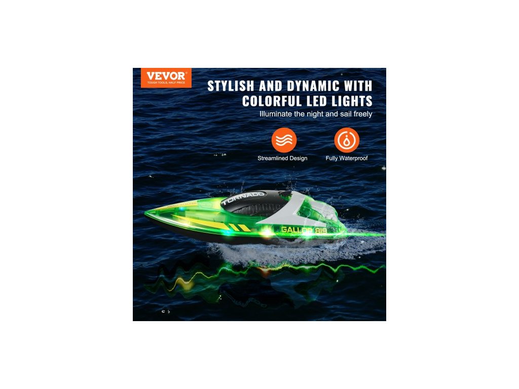 RC člun , 2,4 GHz 12 km/h, Člun na dálkové ovládání pro bazény a jezera, Závodní člun s LED světlem, 2 dobíjecí baterie, Vodotěsný po celé tělo, Hračka na vodní hry jako dárek pro dospělé, chlapce a dívky, ZelenýSkvělá noční plavba