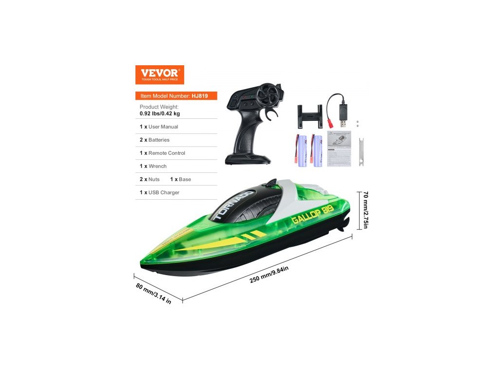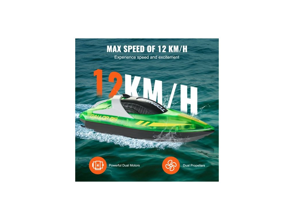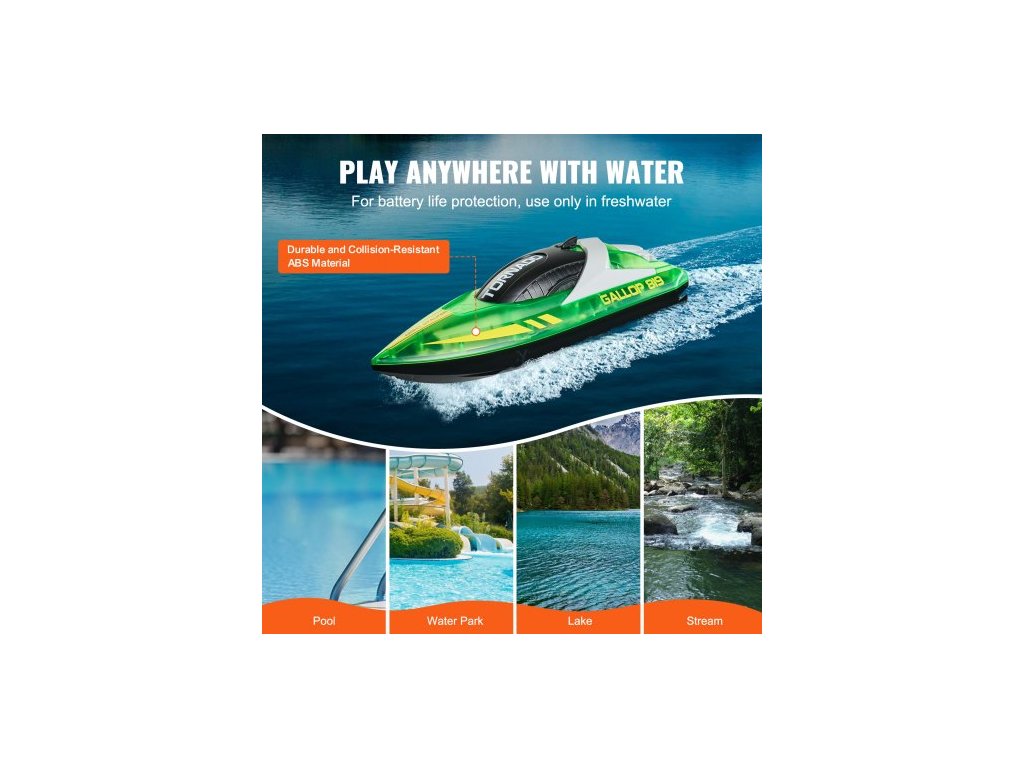 RC člun , 2,4 GHz 12 km/h, dálkově ovládaný člun pro bazény a jezera, závodní člun s LED světlem, 2 dobíjecí baterie, vodotěsný pro celé tělo, vodní hračka jako dárek pro dospělé, chlapce a dívky, zelený