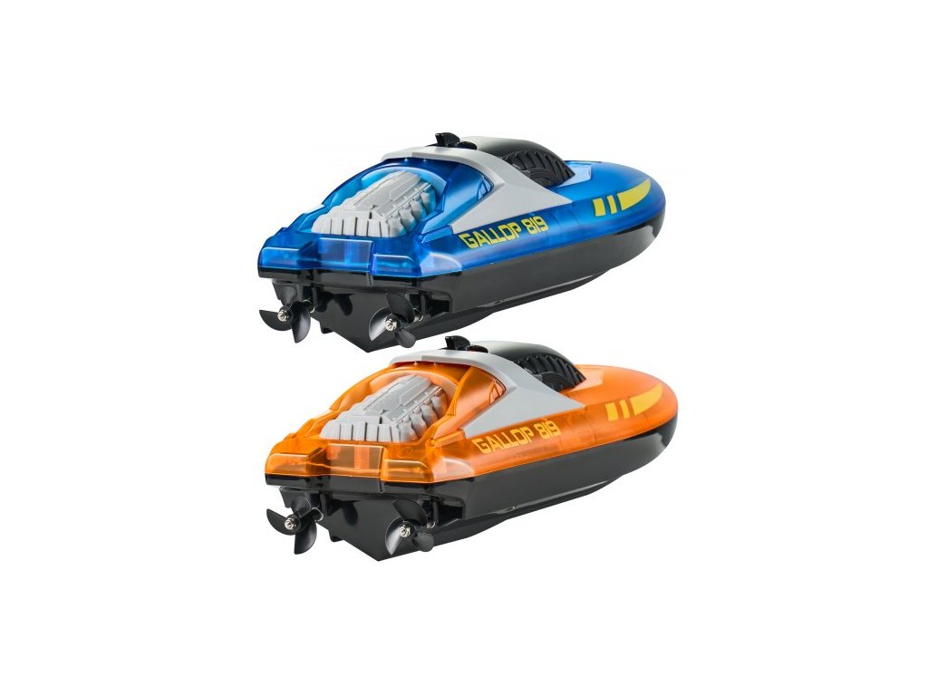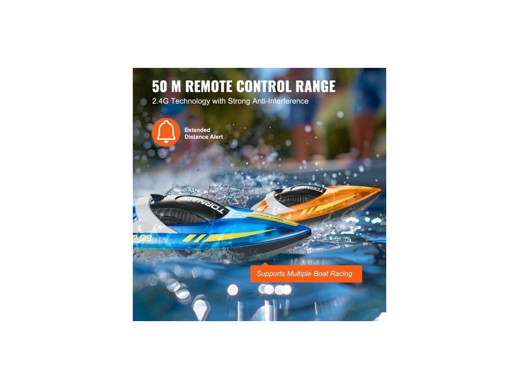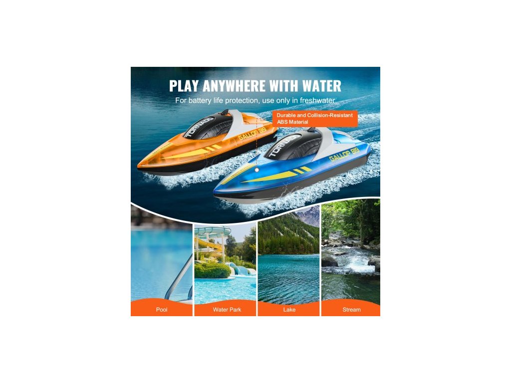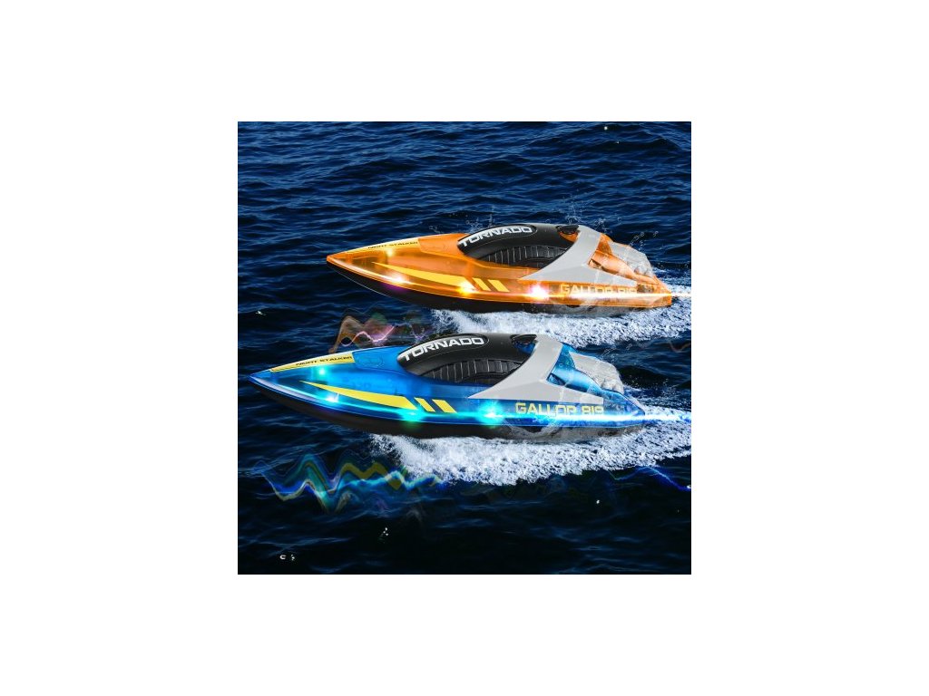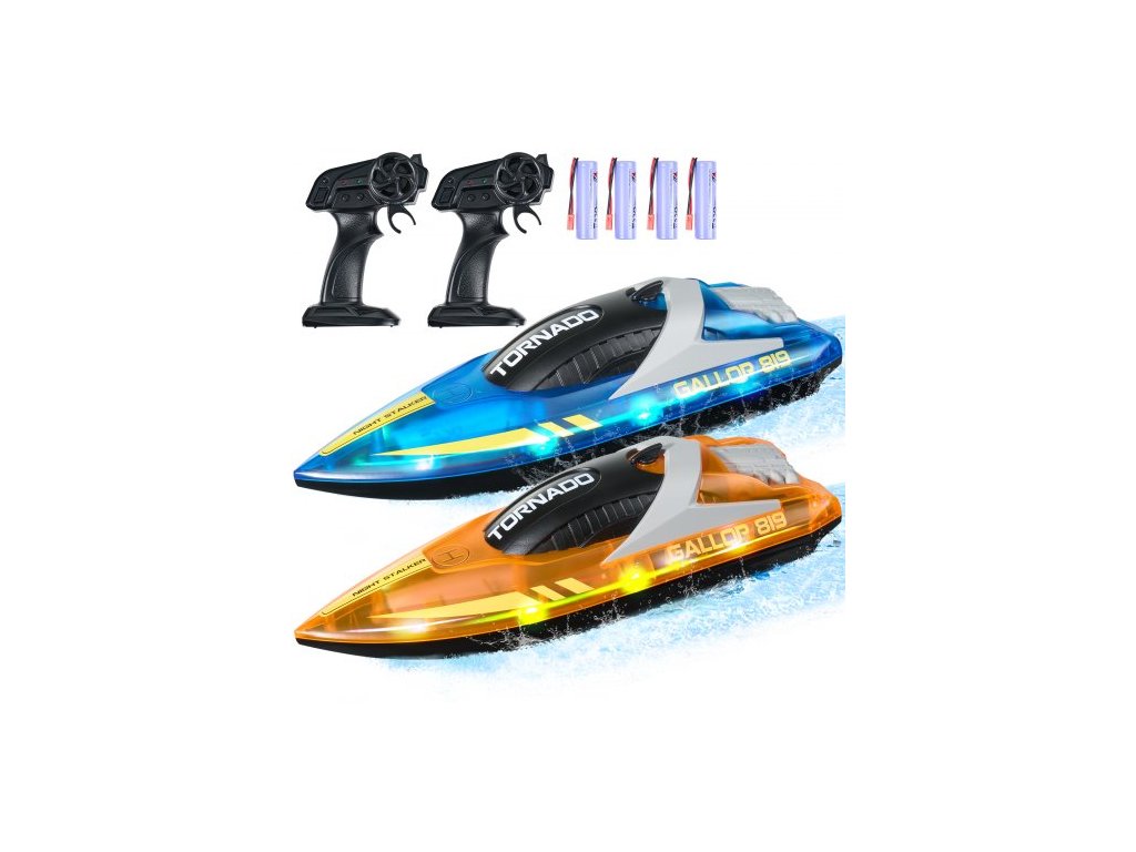 RC člun , sada 2 kusů 2,4 GHz 12 km/h, dálkově ovládaný člun pro bazény a jezera, závodní člun s LED světlem, 4 dobíjecí baterie, vodotěsný pro celé tělo, dárek pro dospělé, chlapce a dívky, modrá a oranžová