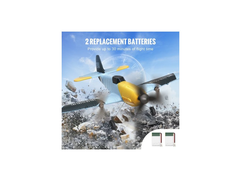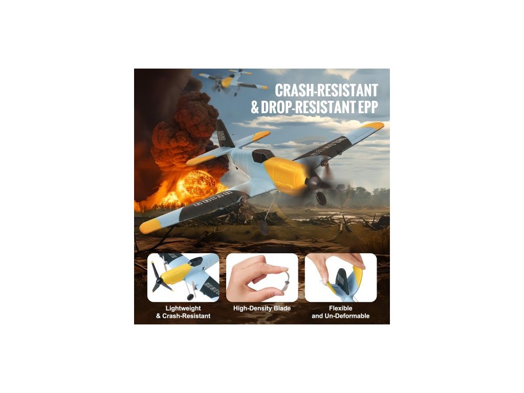 RC letadlo, 2,4 GHz 3 kanálové letadlo na dálkové ovládání s 6osým gyroskopickým stabilizátorem, připravené k letu, stíhací letadlo, hračka s 2 bateriemi, snadno ovladatelný RC kluzák pro dospělé, děti, začátečníky, chlapce