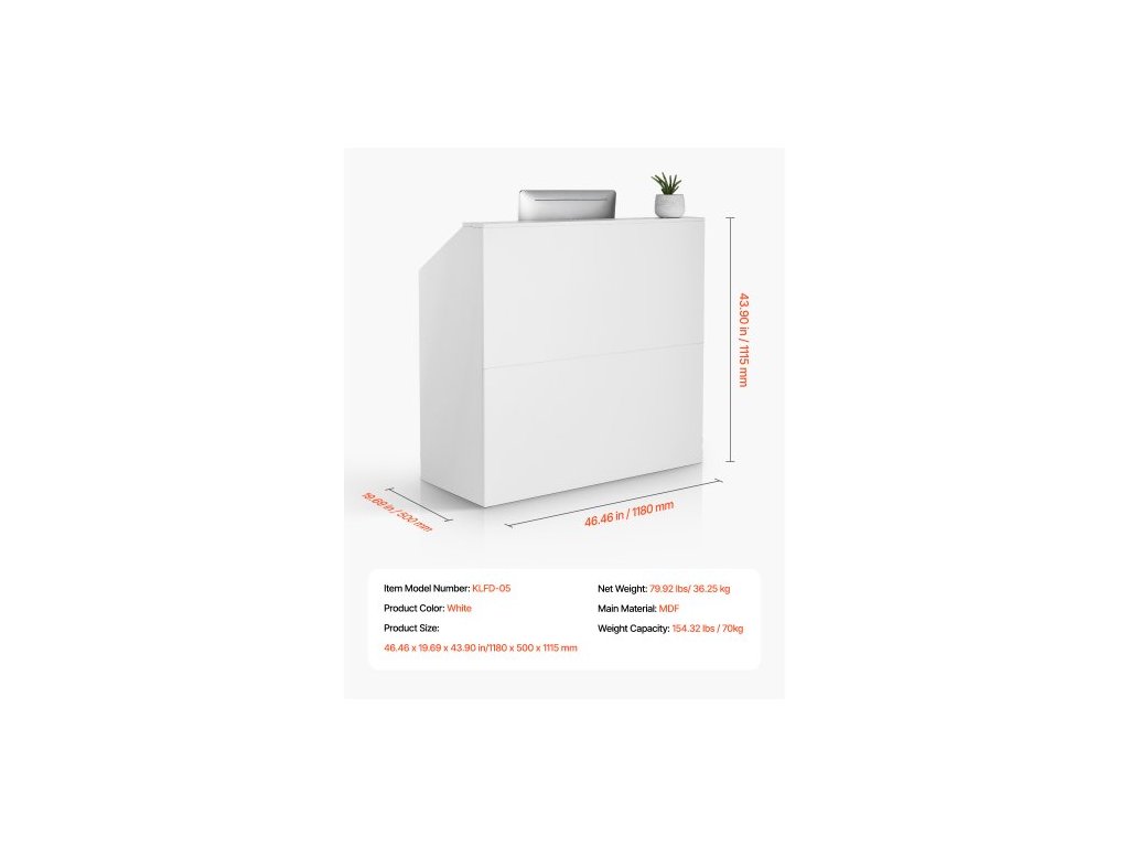 Tvar: Obdélníkový,Nosnost: 154,32 lbs / 70 kg,Barva: Bílá,Číslo modelu položky: KLFD-05,Čistá hmotnost: 79,92 lbs / 36,25 kg,Hlavní materiál: MDF,Rozměry výrobku: 46,46 x 19,69 x 43,90 palce / 1180 x 500 x 1115 mm