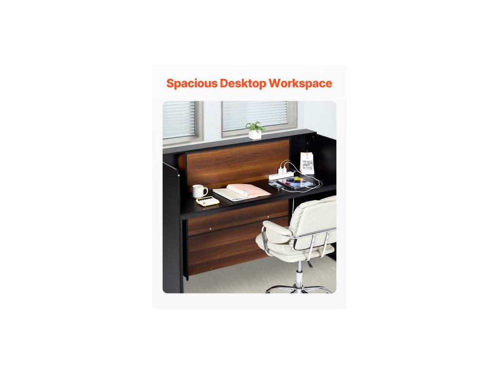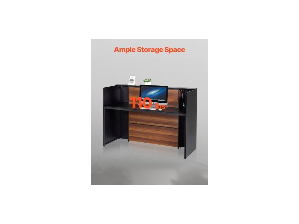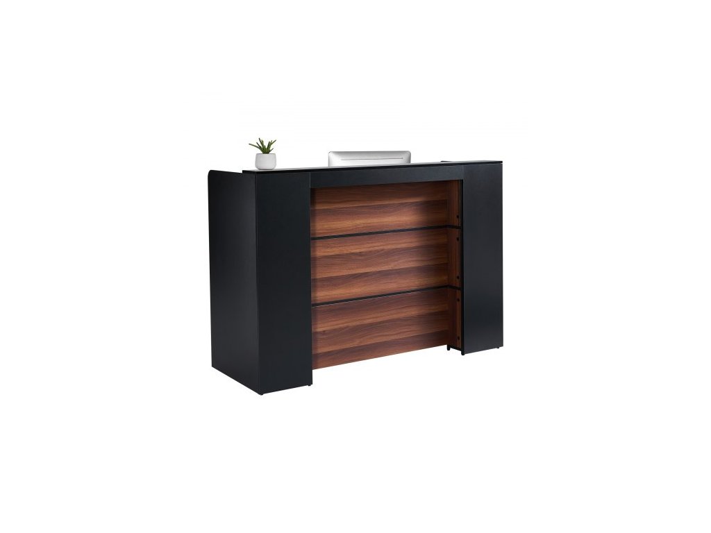 Recepční pult , 62,99 x 23,62 x 43,70 palce, obdélníkový pultový stůl do kanceláře, recepční pult s LED osvětlením, pro pokladny, vstupní halu, kosmetický salon a kancelář, černohnědýRozšiřuje otevřený prostor