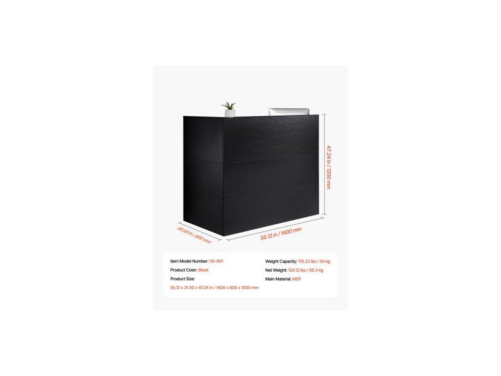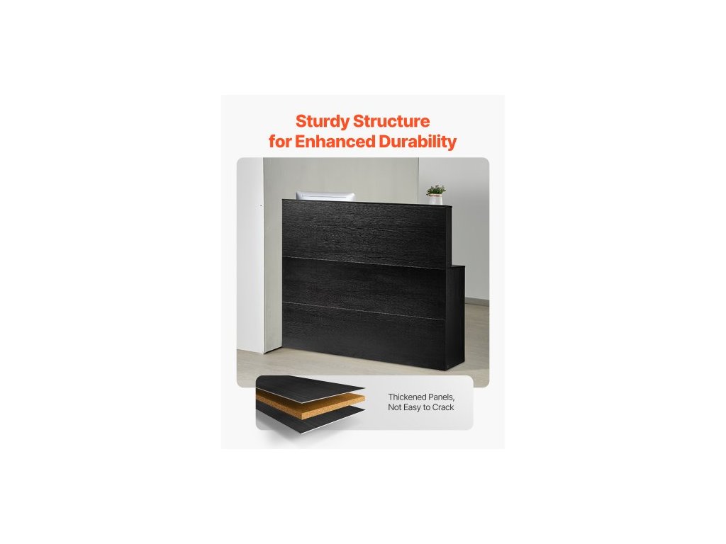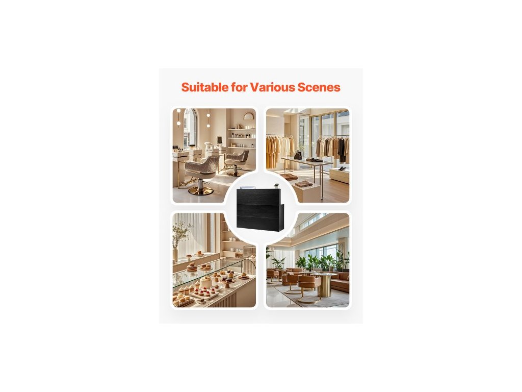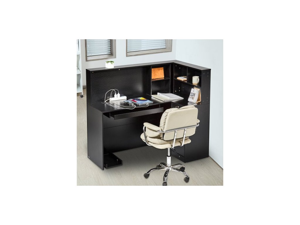 Recepční stůl , 55,12 x 31,50 x 47,24 palce, pultový stůl ve tvaru L, kancelářský recepční pult se zásuvkou, přihrádkou na klávesnici a úložnou skříňkou, pro pokladny, vstupní halu, kosmetický salon a kancelář, černýDostatek úložného prostoru