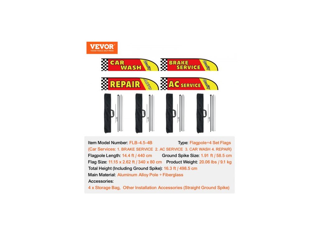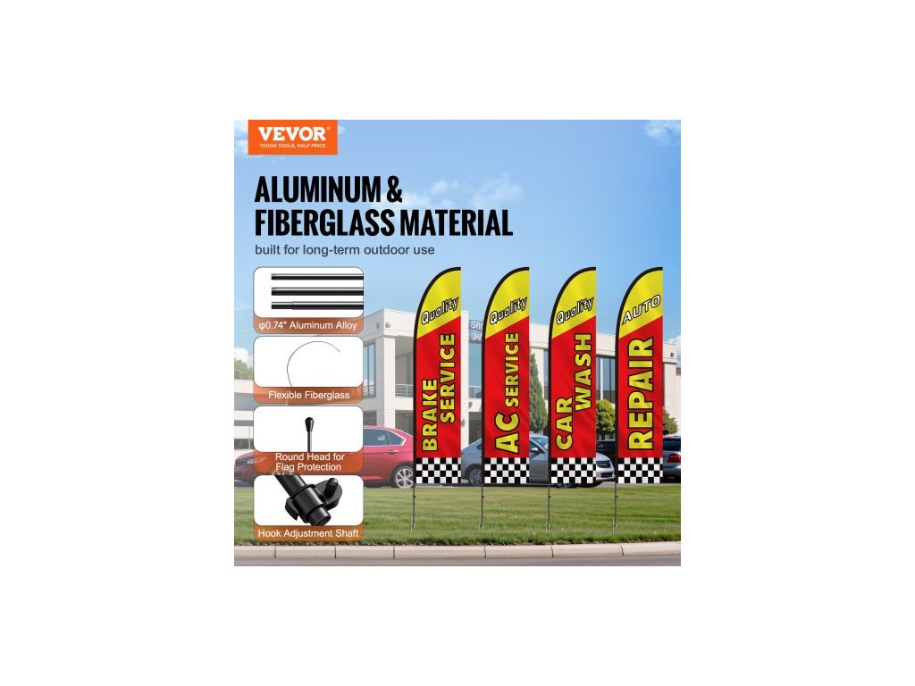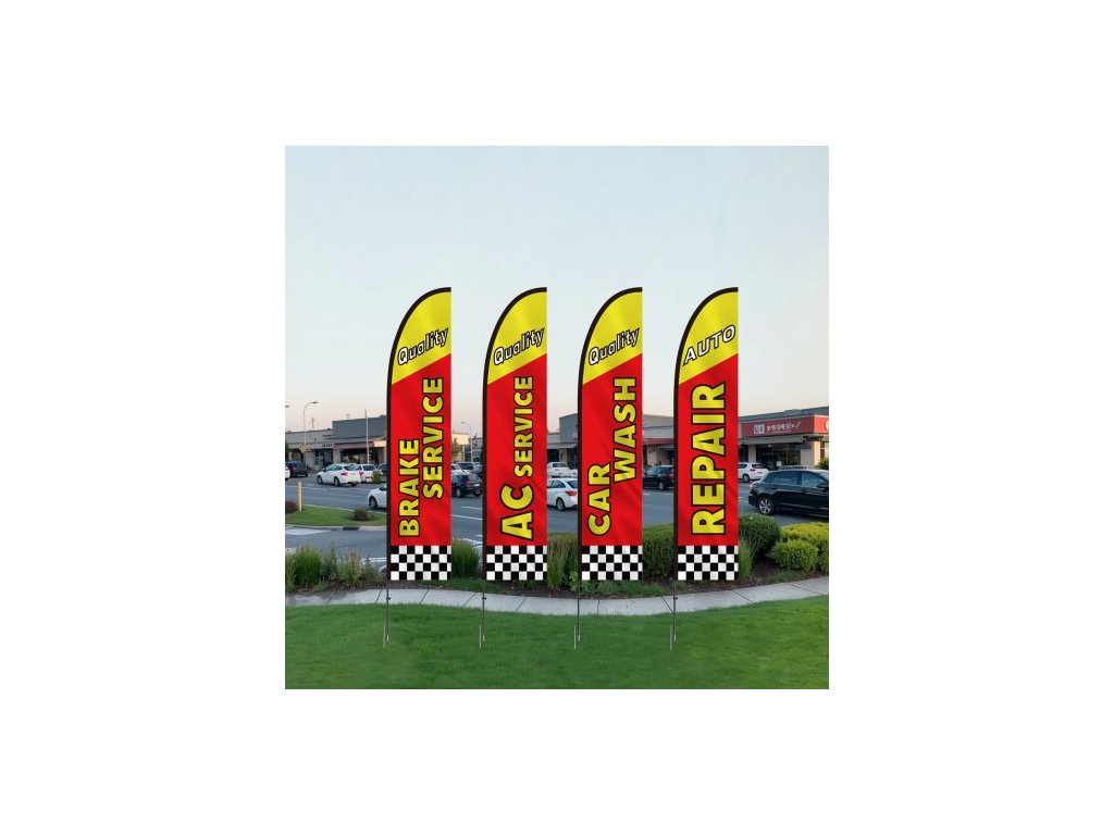 Reklamní vlajka z peří pro opravy automobilů s tyčí, reklamní vlajky pro firmy venku, obsahuje 4 bannerové vlajky, 4 tyče, 4 kolíky do země, vlajky Swooper pro firmy 16,3 stop