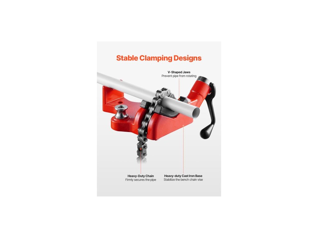 Svěrák na trubky pro vysoké zatížení, kapacita trubek 1/4" - 6", robustní řetěz a litinová základna 28", průmyslové upínání trubek pro instalatérské práce, opravy automobilů, kovoobráběníProtiskluzové čelisti