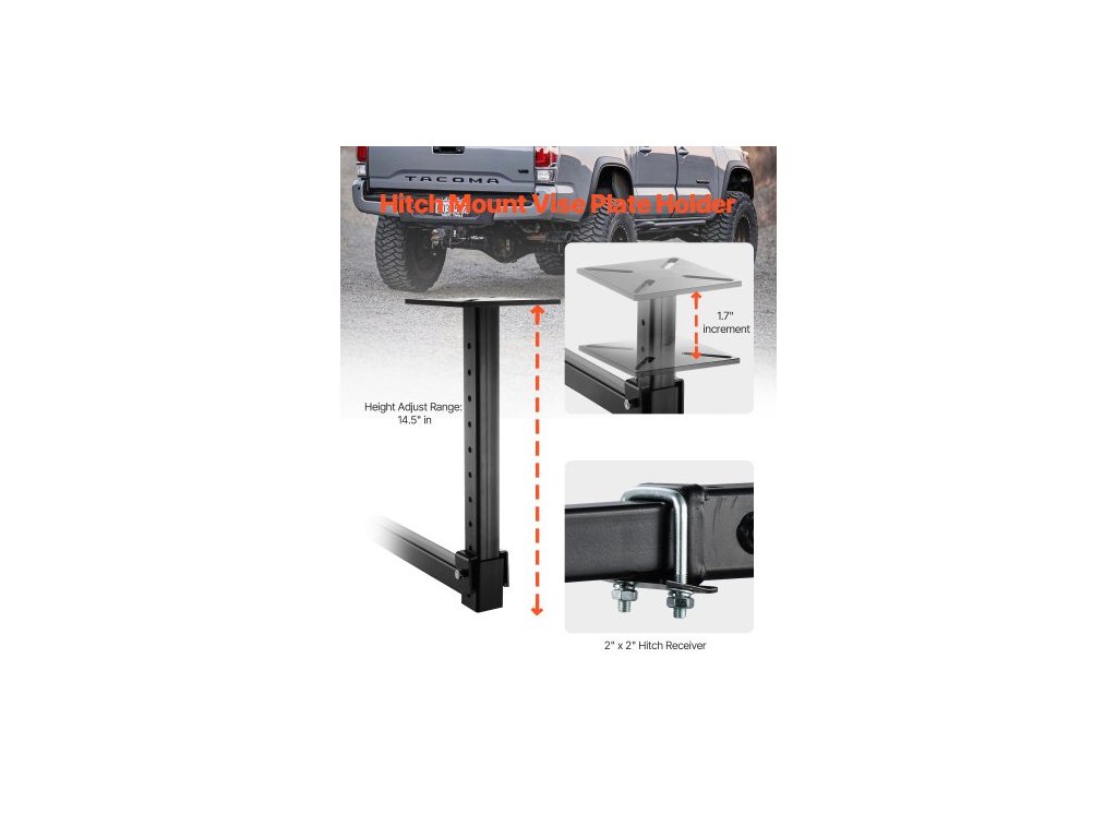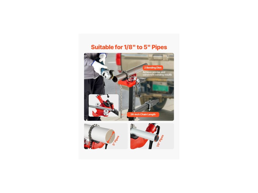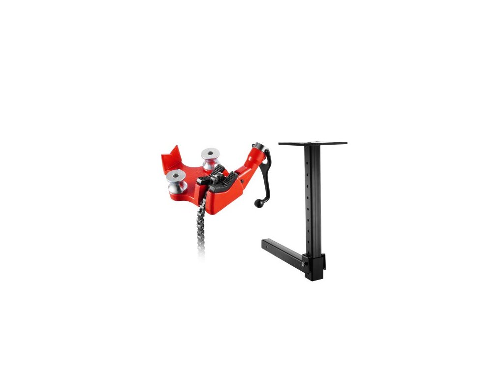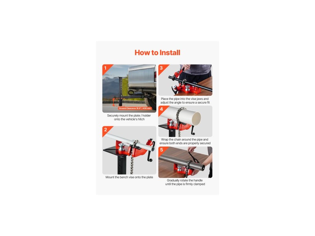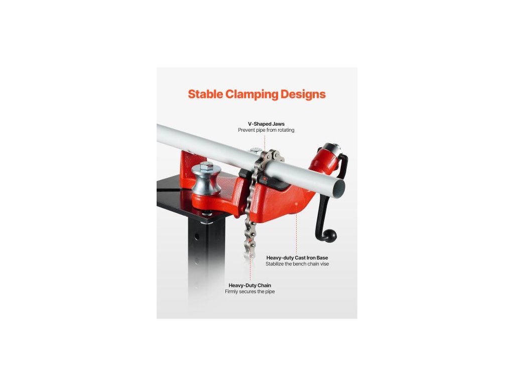 Svěrák na trubky pro vysoké zatížení, kapacita trubek 1/8" - 5", robustní základna z litiny a řetězu 26", držák desky svěráku pro montáž na závěs s nastavitelnou výškou - vhodný pro uchycení 2 palce x 2 palceProtiskluzové čelisti