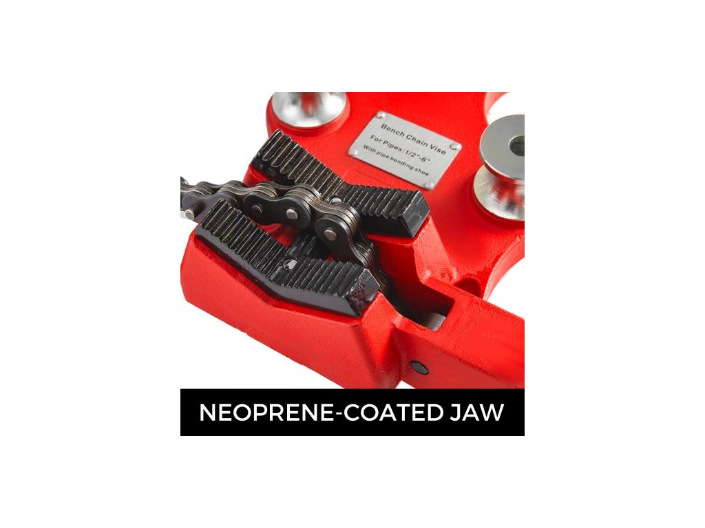 Řetězový svěrák se šroubem, kapacita trubek 1/8 až 5 palců, vysoce odolný řetězový svěrák na trubky s klikou, čelist s neoprenovým povlakem, litinový materiál, ideální pro různé druhy trubek