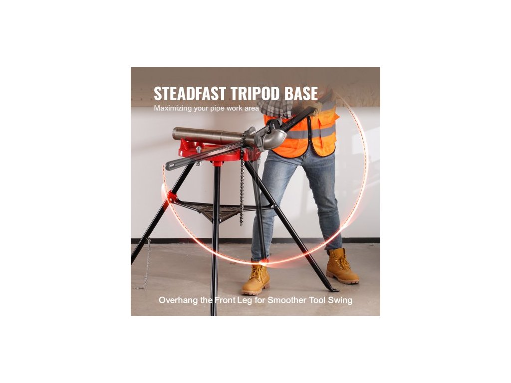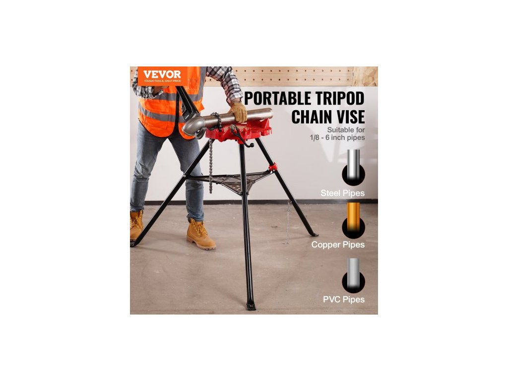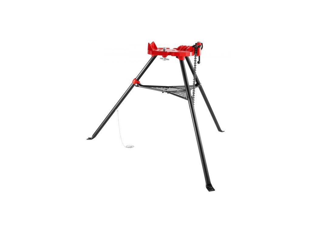 Řetězový svěrák se stativovým stojanem | Nosnost trubek 3,2 až 152 mm | Nosnost 600 kg | Přenosný stojan se skládacími nohami a odkládacím stolem na nářadí | Ideální pro instalatérské a potrubní práceŠiroká nosnost trubek