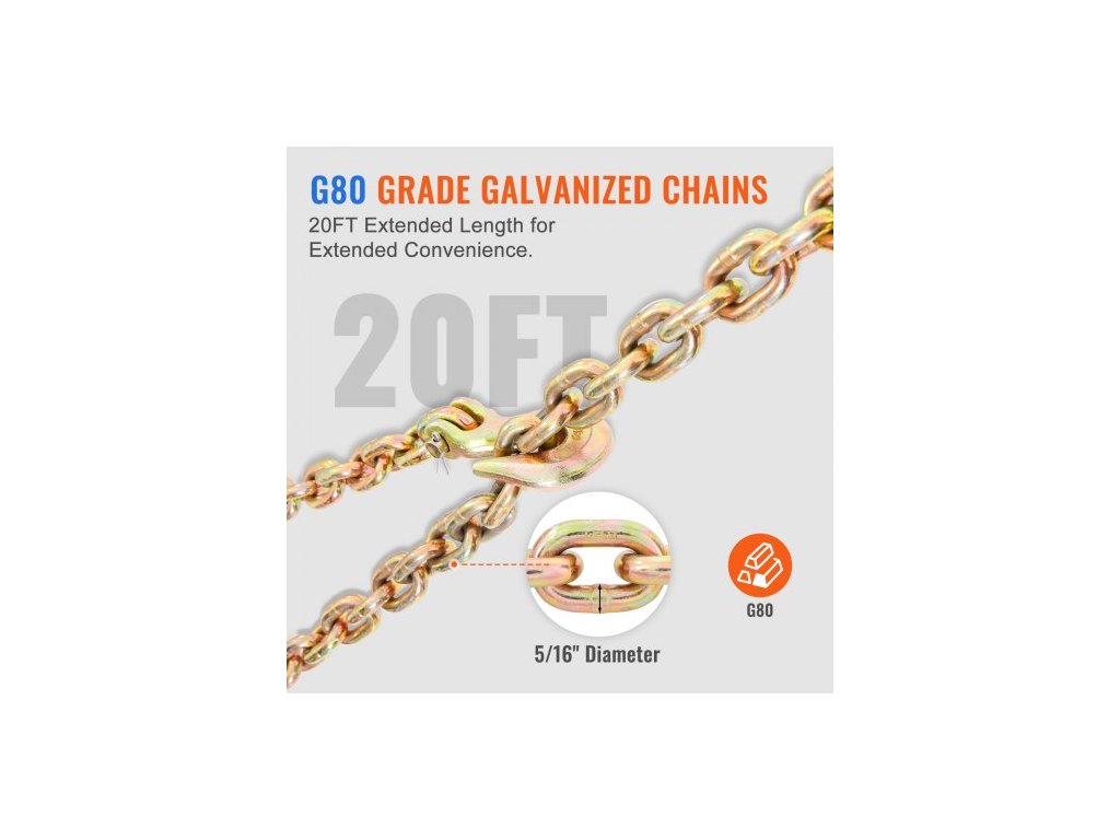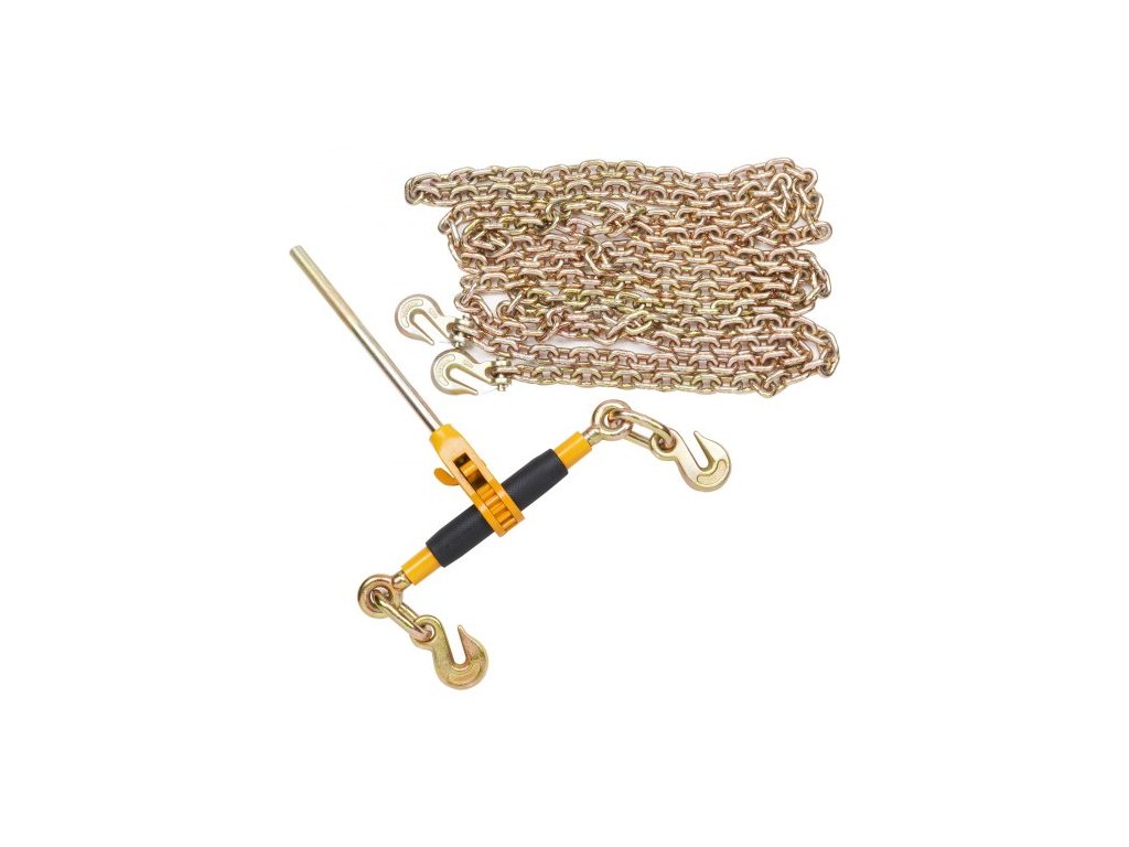 Řetězový upevňovací mechanismus s ráčnou, 0,8 - 0,9 cm, pro vysoké zatížení, s řetězy G80, bezpečné omezení zatížení 3220 kg, protiskluzová rukojeť, upevňovací řetězové upevňovací mechanismy pro plošinový přívěs, 4 kusy