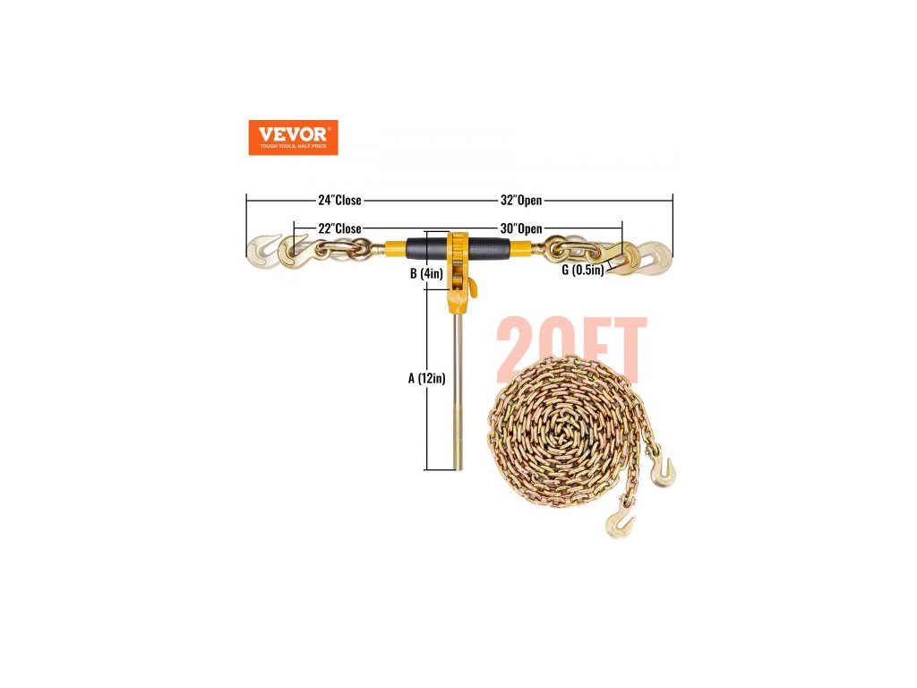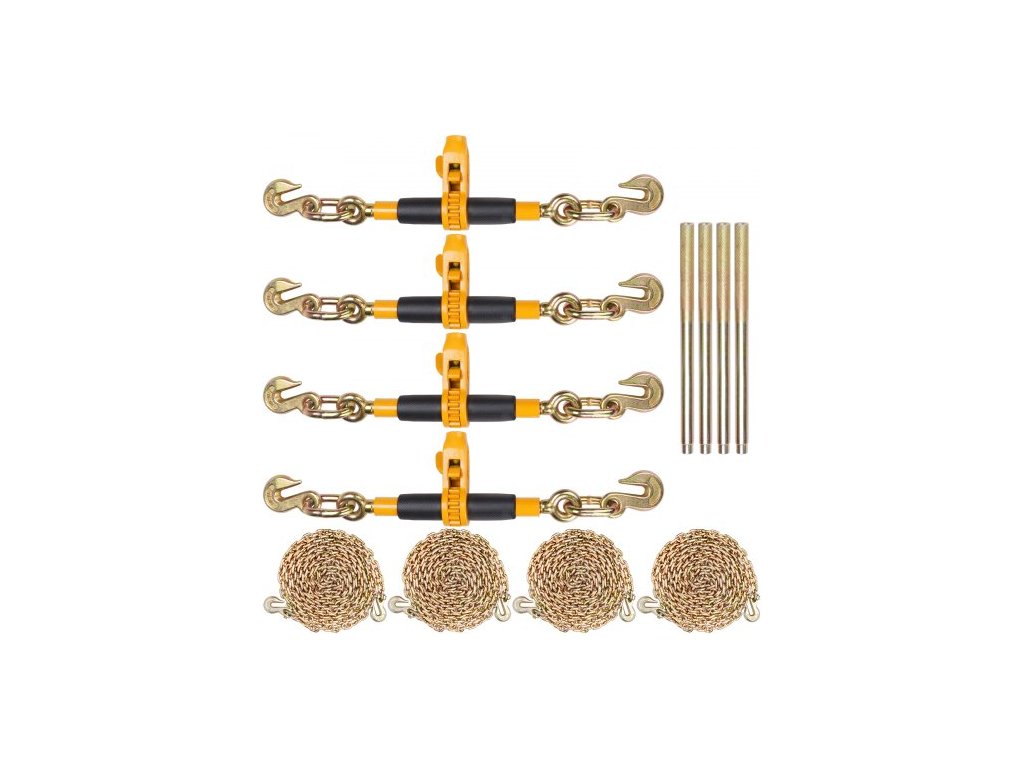 Řetězový upínací mechanismus s ráčnou, 0,8 - 0,9 cm pro vysoké zatížení, s řetězy G80, bezpečné omezení zatížení 3220 kg, pracně úsporná protiskluzová rukojeť, upevňovací řetězové upínací mechanismy pro plošinový přívěs, 4dílnápracně úsporná konstrukce páky