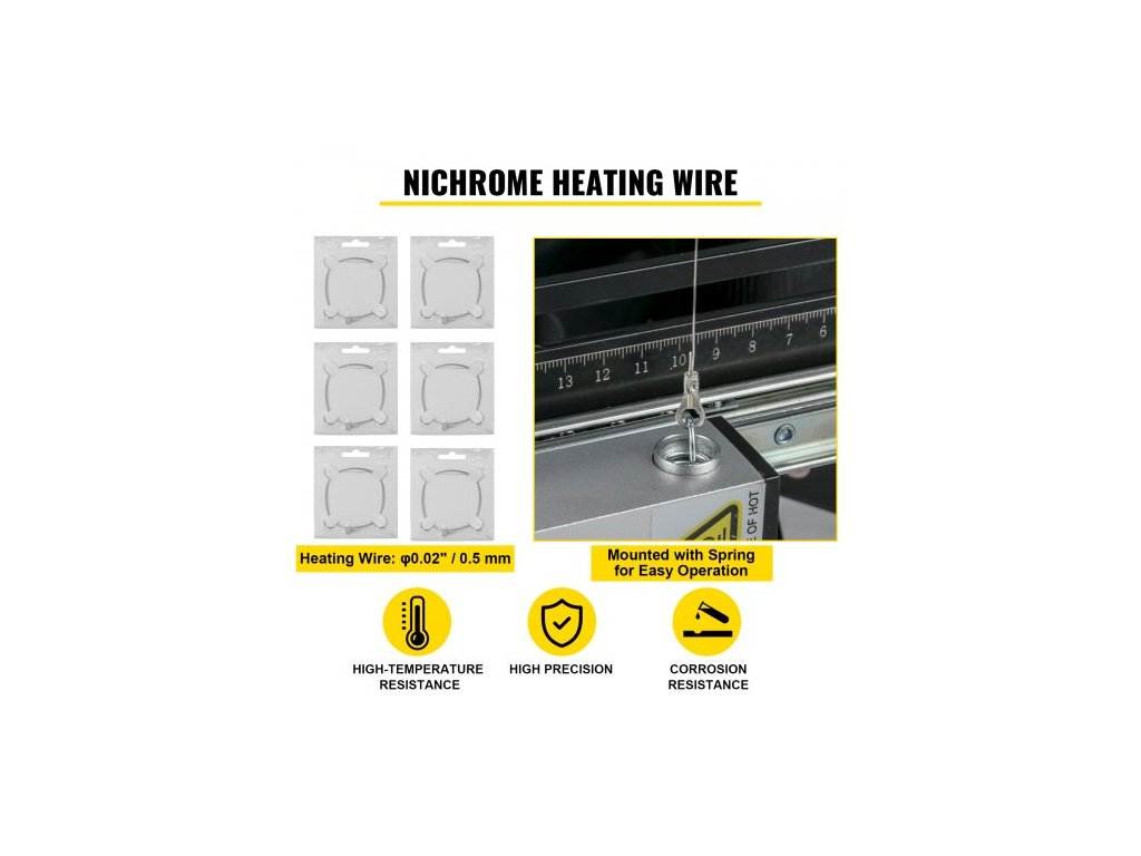 Průměr topného drátu: 0,02" / 0,5 mm,Rozsah zkoseného řezu: 0 - 90°,Rozměry položky: 64,17" x 13,78" x 5,91" / 163 x 35 x 15 cm,Materiál topného drátu: Gr20Ni80,Provozní teplota: 360℃ / 680℉,Materiál rámu: Hliníková slitina,Vstupní napětí: 220V,Maximální délka řezu: 45,28'' / 115 cm,Výstupní napětí: 36 V, Výkon: 160 W, Maximální tloušťka řezu: 42 cm (doporučeno 40 cm), Stupeň vodotěsnosti transformátoru: IP 68