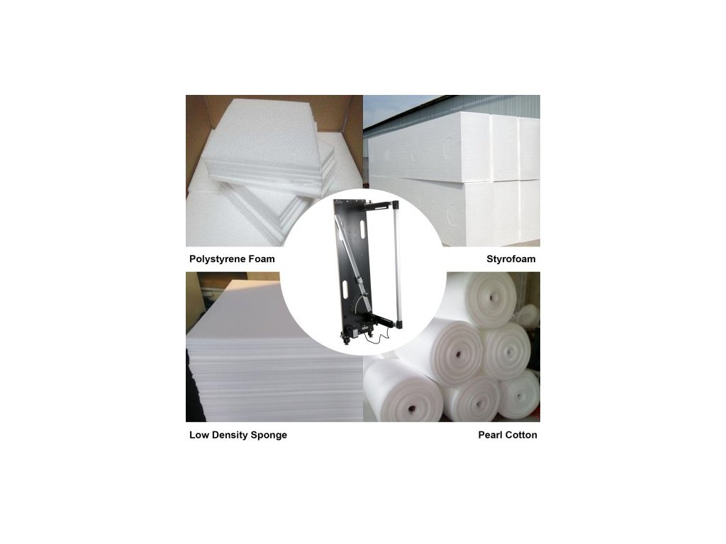 Řezačka polystyrenu Max. tloušťka řezu 42 cm, řezačka polystyrenu max. délka řezu 127 cm, řezačka polystyrenu horkým drátem 0-90°, řezačka polystyrenu, šest topných drátů se stojanem pro řezání perleťové bavlny