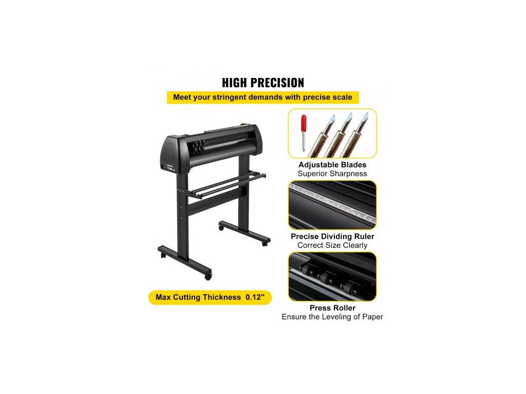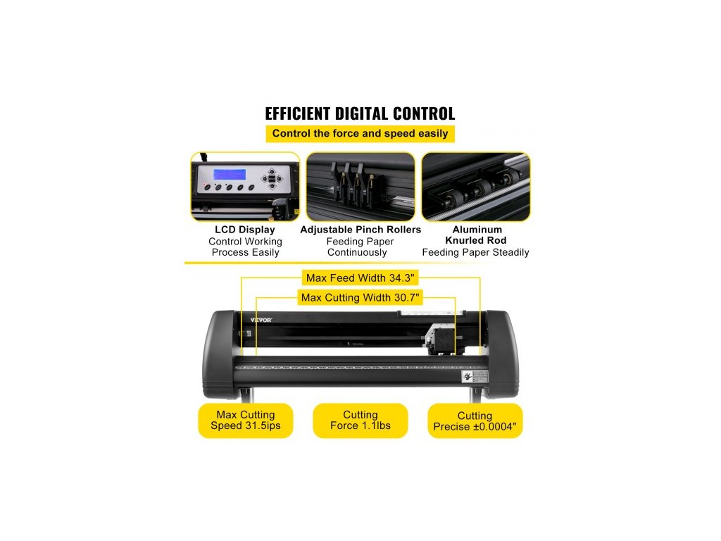 Max. řezná síla: 500 g,Materiál: hliníková slitina,Dodávaný software: Signcut a Signmaster,Hmotnost: 17 kg,Rozměry produktu: 106 x 51 x 100 cm,Max. šířka řezu: 780 mm,Přesnost řezu: ±0,004 mm / ±0,01 mm,Max. Tloušťka řezu: 3 mm, Typ motoru: Krokový motor, Model: KH-870A, Kompatibilita s OS: Windows, Online režim: USB / COM, Max. šířka posuvu: 870 mm, Max. rychlost řezu: 800 mm/s, Napájení: AC 90-264V