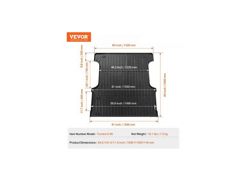 Rohož na korbu nákladního vozu , kompatibilní s vozy Toyota Tundra 2022-2024, TPE rohož na korbu nákladního vozu vhodná pro korbu o šířce 5,5 stop, silná a odolná rohož na korbu, příslušenství do auta pro ochranu před každým počasím, zabraňuje uklouznutíPřizpůsobení na míru