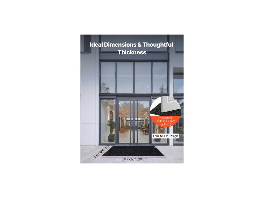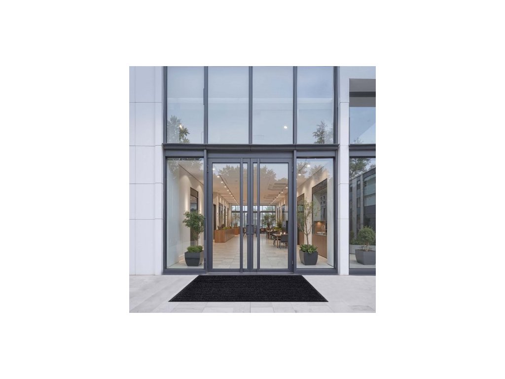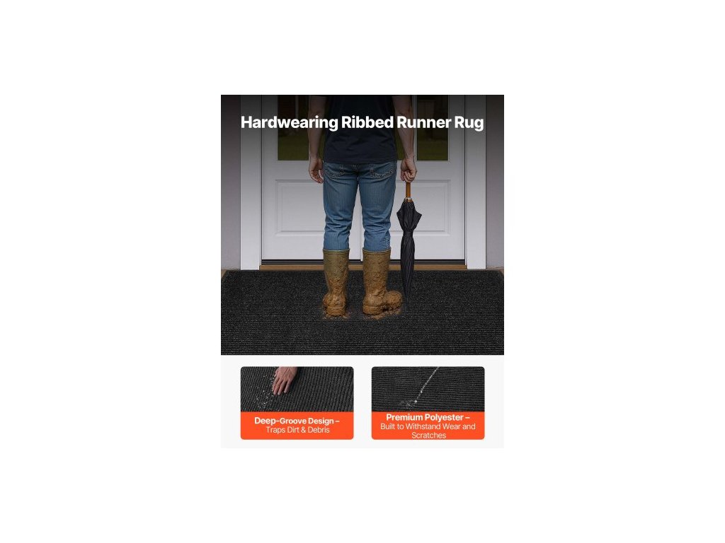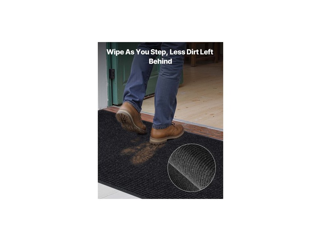 rohožka do vchodových dveří, 1829 x 1219 mm komerční rohožka pro vnitřní i venkovní použití, stylový pruhovaný průmyslový koberec s PVC podkladem, odolný pratelný vstupní koberec do chodby, na balkon, do garáže, šedáVelkoformátový design
