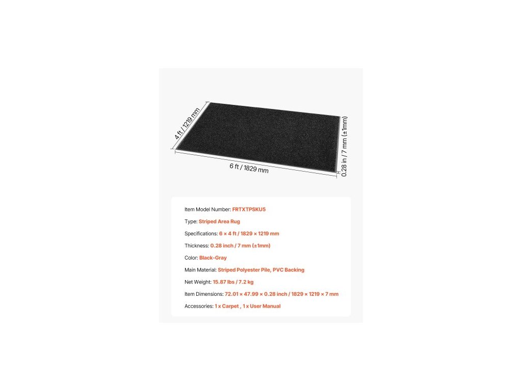 Tloušťka: 0,28 palce / 7 mm,Typ: Koberec s dlouhým pruhem,Rozměr: 6 x 4 stopy / 1829 x 1219 mm,Barva: Šedá,Číslo modelu položky: FRTXTPSKU5,Rozměry produktu: 72,01 x 47,99 x 0,28 palce / 1829 x 1219 x 7 mm,Čistá hmotnost: 15,87 lbs / 7,2 kg,Hlavní materiál: Koberec Povrch: Polyester (Pruhované), Podklad: PVC