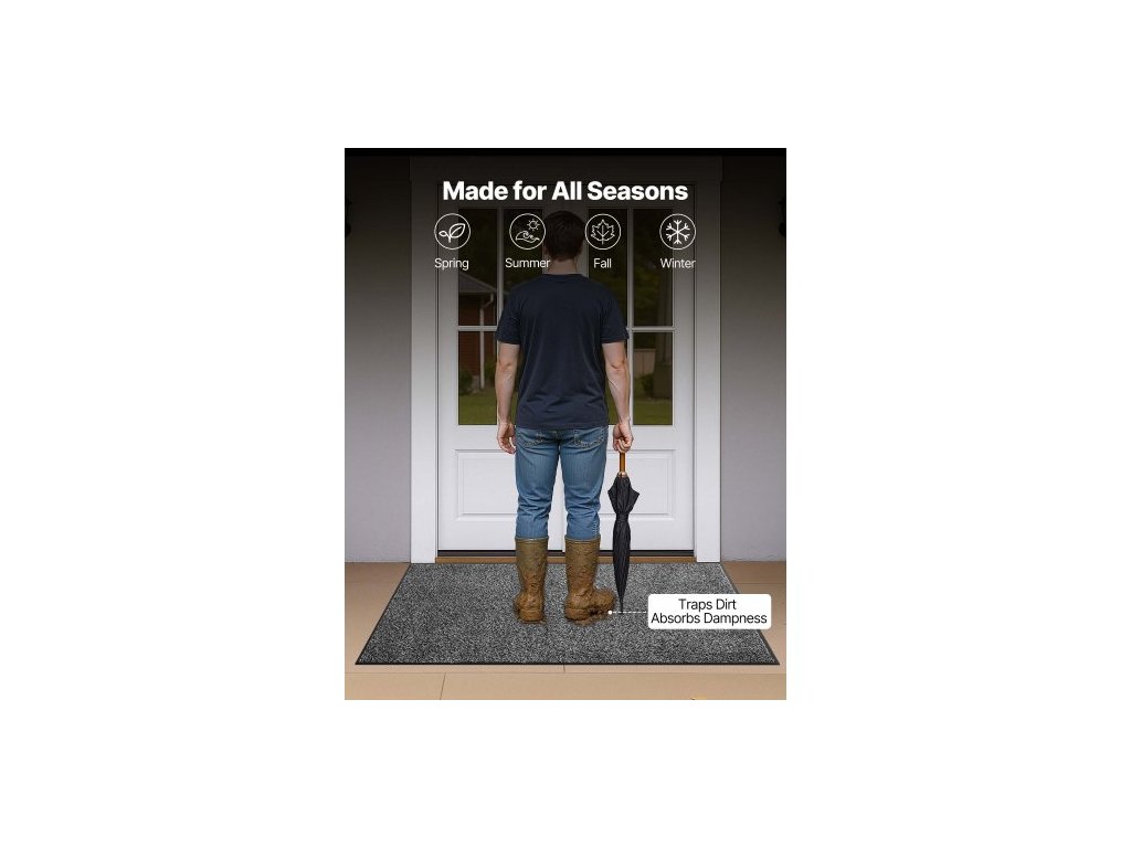 rohožka do vchodových dveří, komerční rohožka 1524 x 914 mm pro vnitřní i venkovní použití, průmyslový vstupní koberec s PVC podkladem, odolný pratelný vstupní koberec do chodby, kuchyně, balkonu, garáže, šedáRozměr a velikost