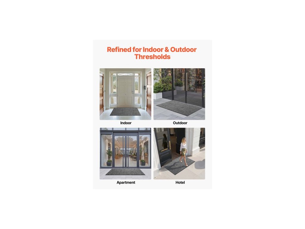 rohožka do vchodových dveří, 1524 x 914 mm komerční rohožka pro vnitřní i venkovní použití, průmyslový vstupní koberec s PVC podkladem, odolný pratelný vstupní koberec do chodby, kuchyně, balkonu, garáže, šedá