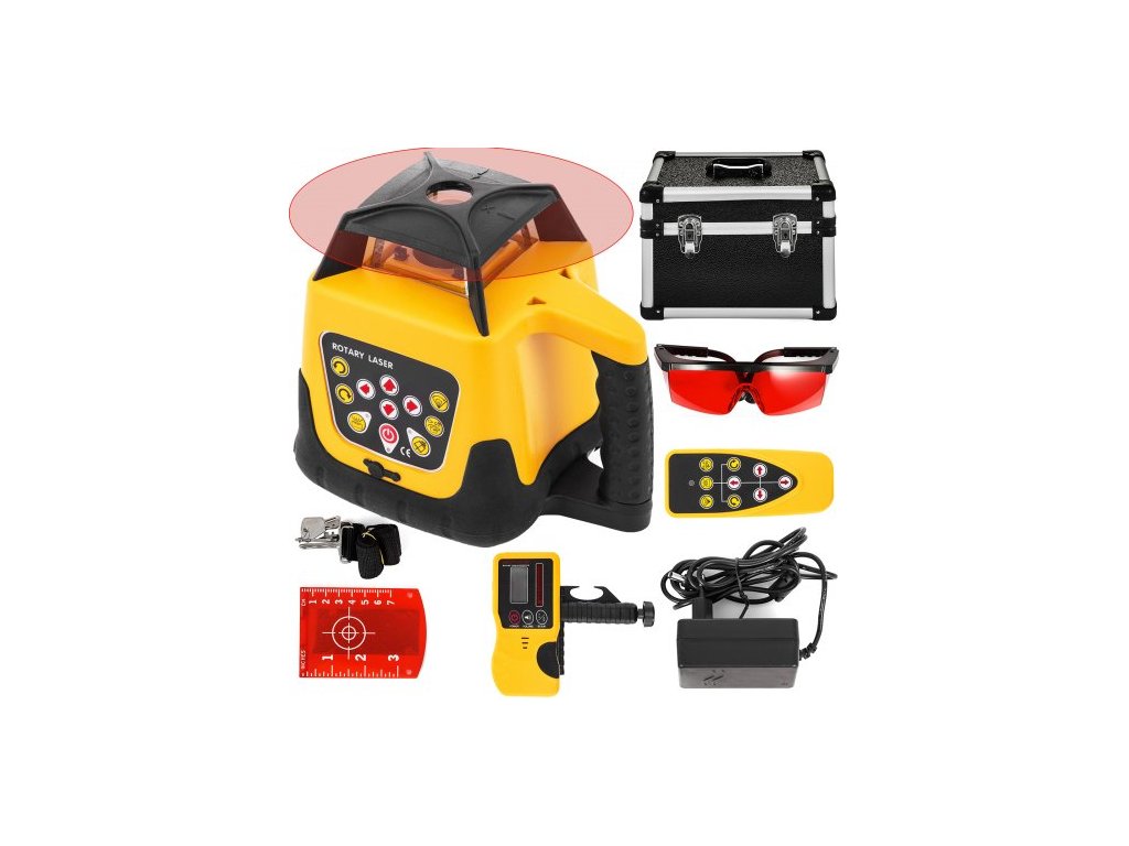 Sada rotačního laserového nivelačního přístroje Digitální samonivelační rotační laserový přístroj s červeným paprskem, dosah 500 m s přijímačem dálkového ovládání v přepravním pouzdřeVynikající vodotěsný materiál