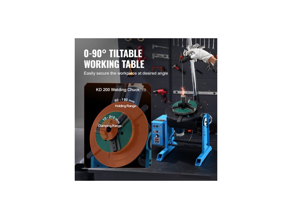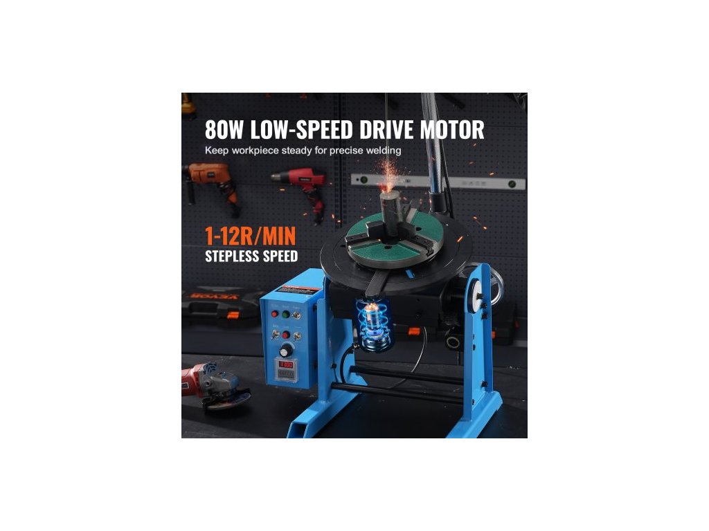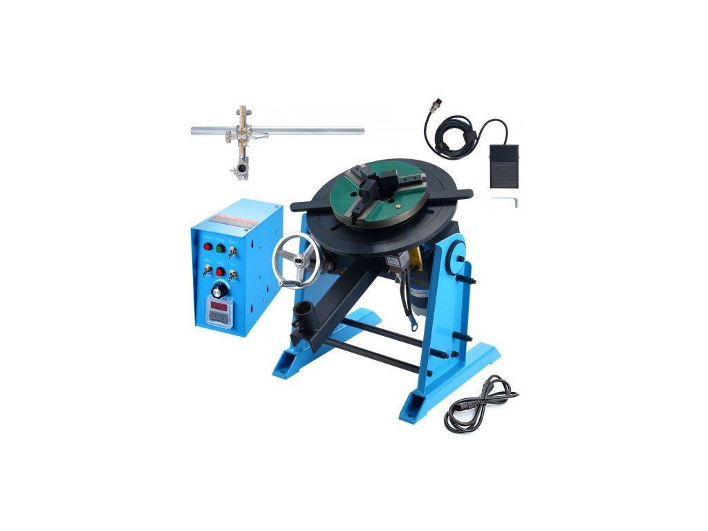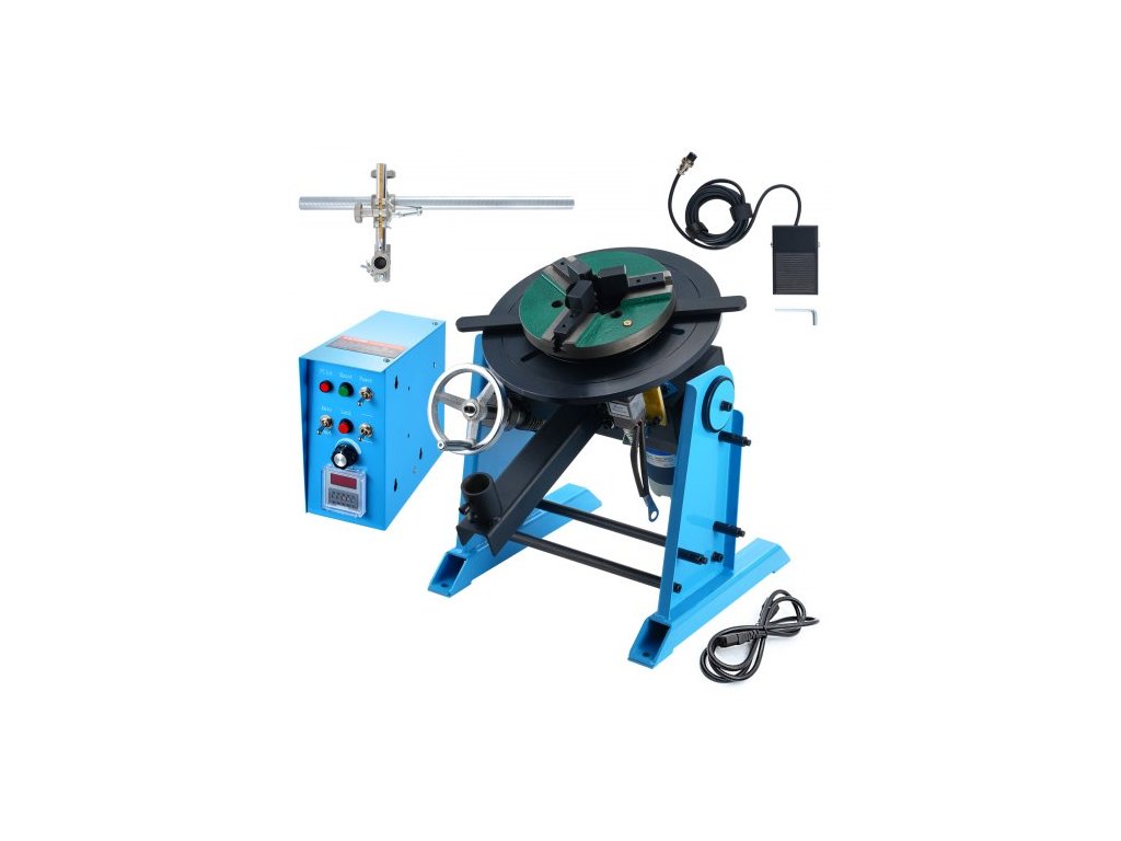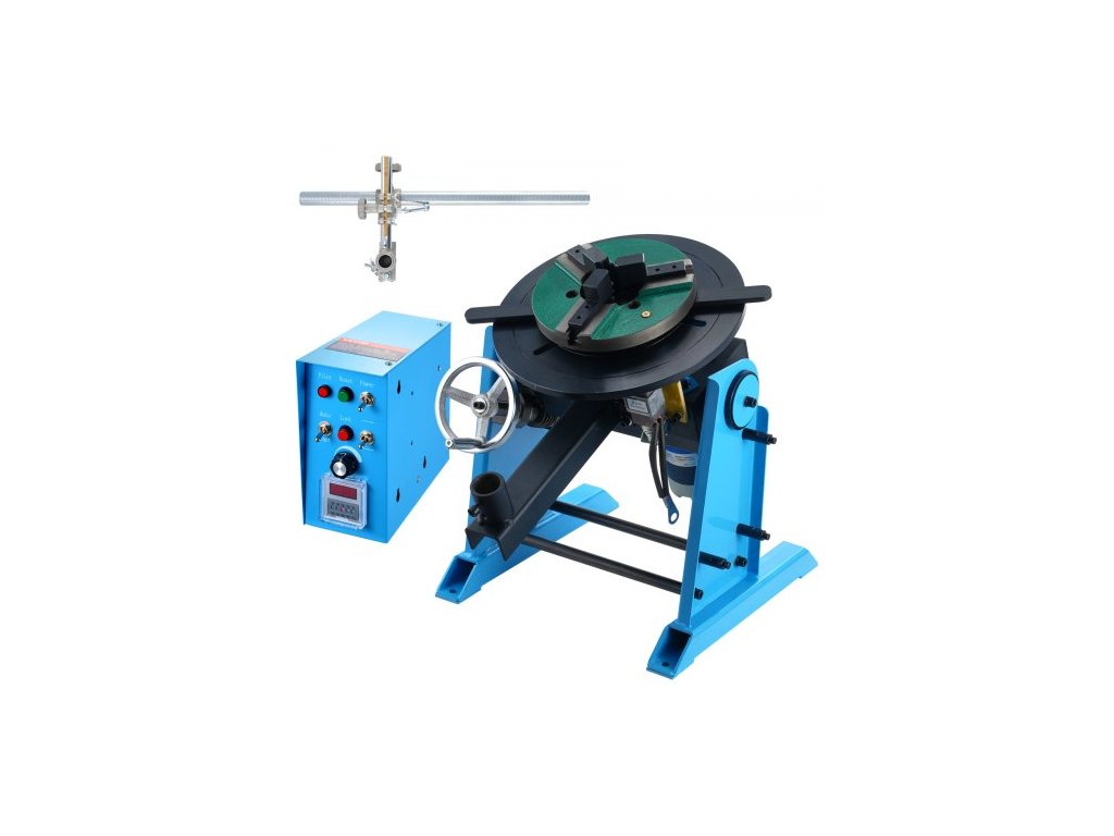 Rotační svařovací polohovač 30 kg, otočný stůl pro svařování 0-90°, 1-12 ot./min., 80 W, s 12,4palcovým 3čelisťovým sklíčidlem pro soustruh a stojanem pro svařovací hořák pro řezání, broušení, montáž a testování