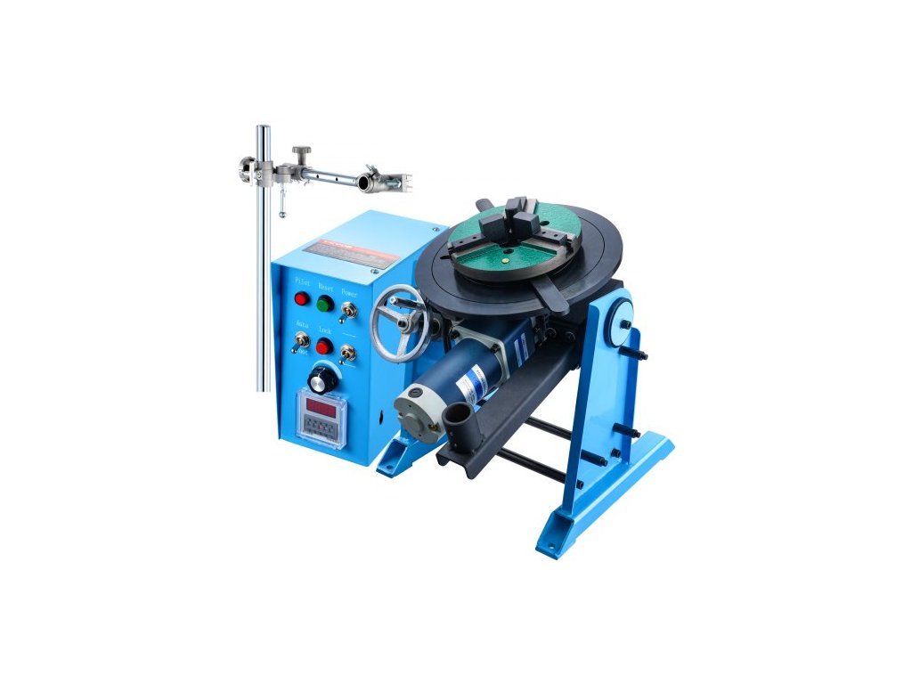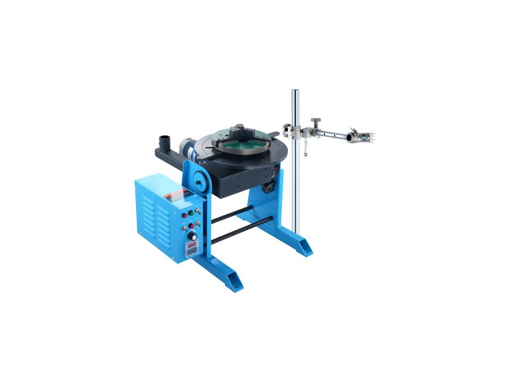 Rotační svařovací polohovač 50 kg, otočný stůl pro svařování 0-90°, 0,5-6 ot./min., 120 W, s 12,4" 3čelisťovým sklíčidlem pro soustruh a stojanem pro svařovací hořák pro řezání, broušení, montáž a testování