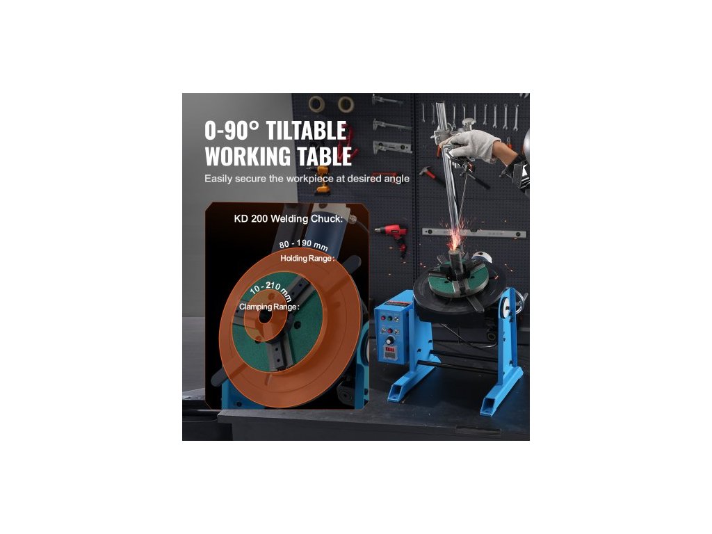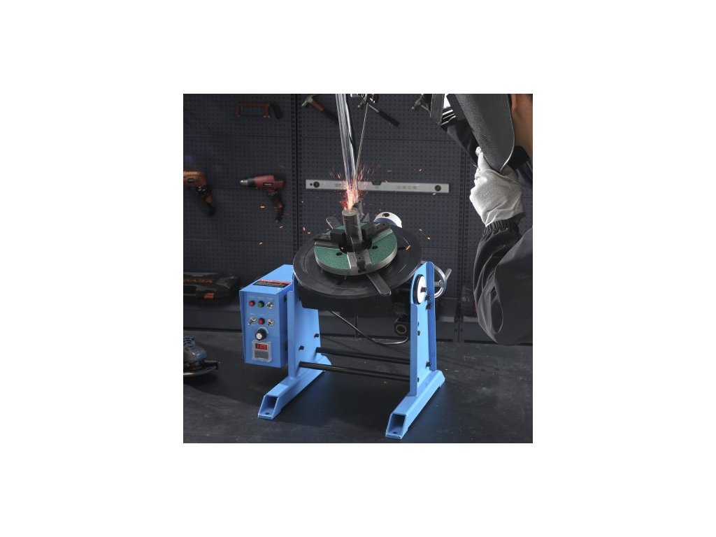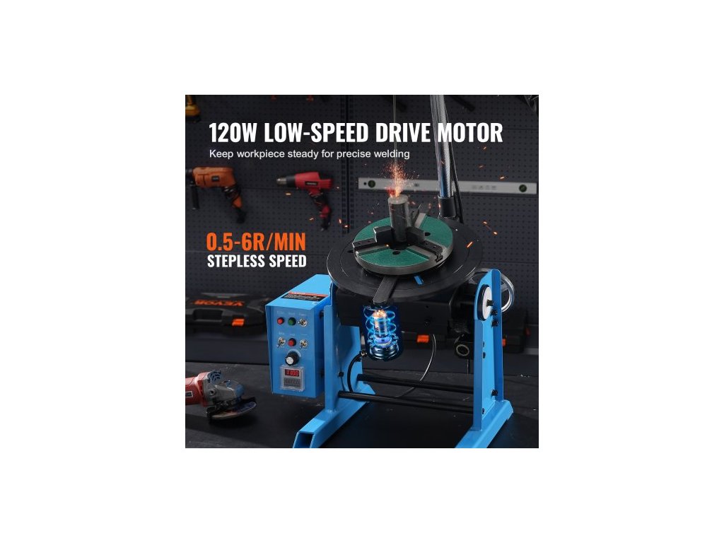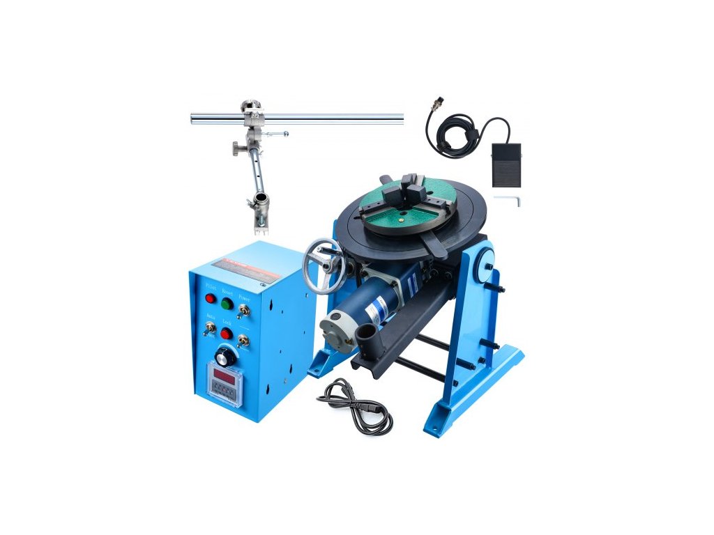 Rotační svařovací polohovač 50 kg, otočný stůl pro svařování 0-90°, 0,5-6 ot./min. 120 W, s 12,4" 3čelisťovým sklíčidlem pro soustruh a stojanem pro svařovací hořák pro řezání, broušení, montáž a testováníRobustní nosnost