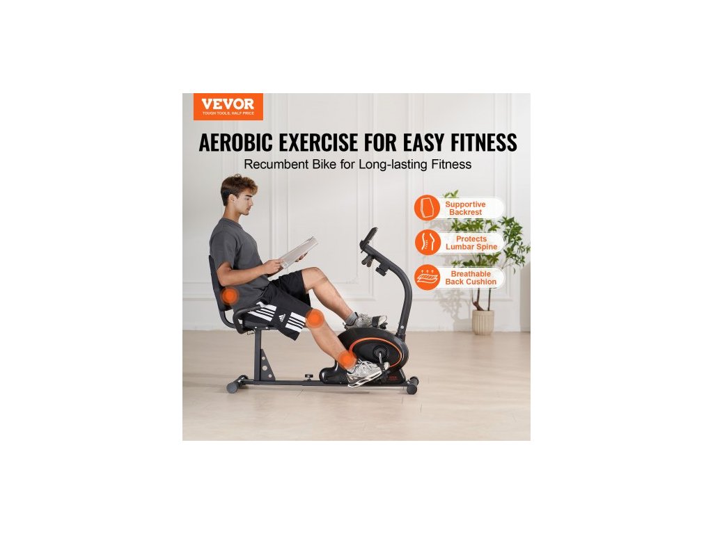 Rotoped Recumbent, rotoped pro dospělé a seniory, stacionární kolo s nastavitelným magnetickým odporem pro domácí použití, rotoped s pohodlným sedákem, LCD monitorem a těžkým setrvačníkem
