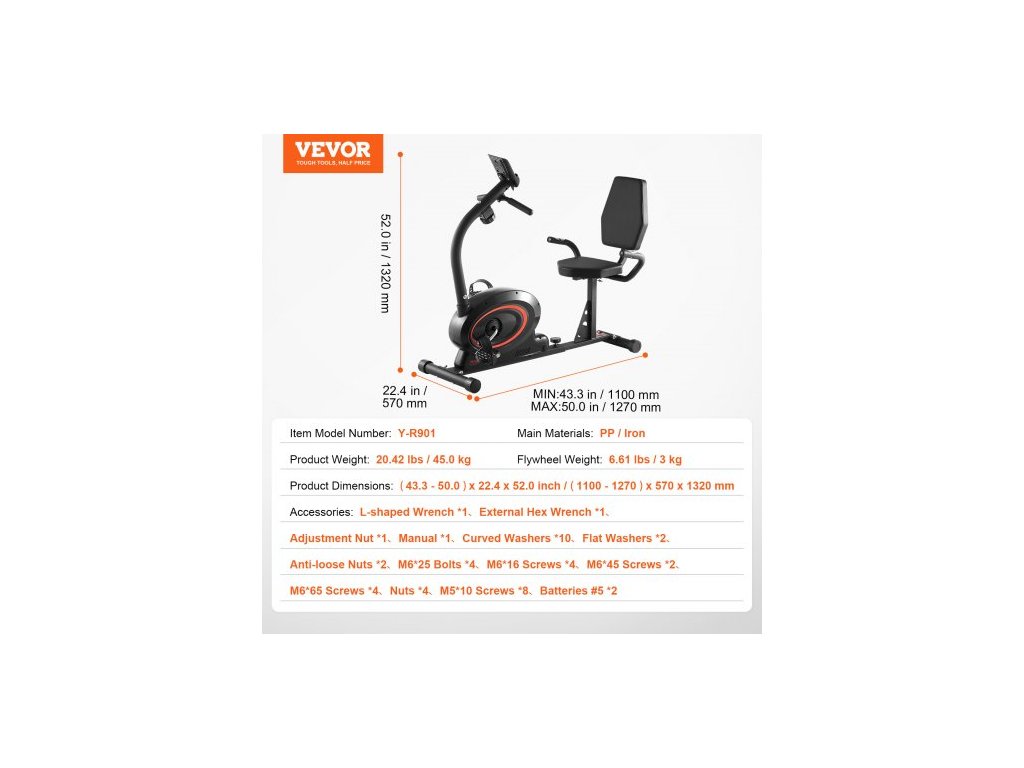 Rotoped Recumbent, rotoped pro dospělé a seniory, stacionární kolo s nastavitelným magnetickým odporem pro domácí použití, cvičební kolo s pohodlným sedákem, LCD monitorem a těžkým setrvačníkemMagnetický rotoped