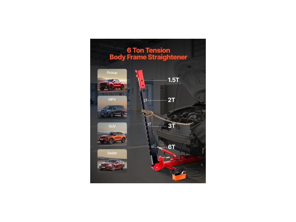 Rovnačka karoserií , napínací zařízení 6T s hydraulickou nožní pumpou 6000 PSI a otočným sloupkem, obsahuje 16 rovnacích nástrojů, pro autoservis, sedan, SUV, pickupVýkonné rovnací zařízení