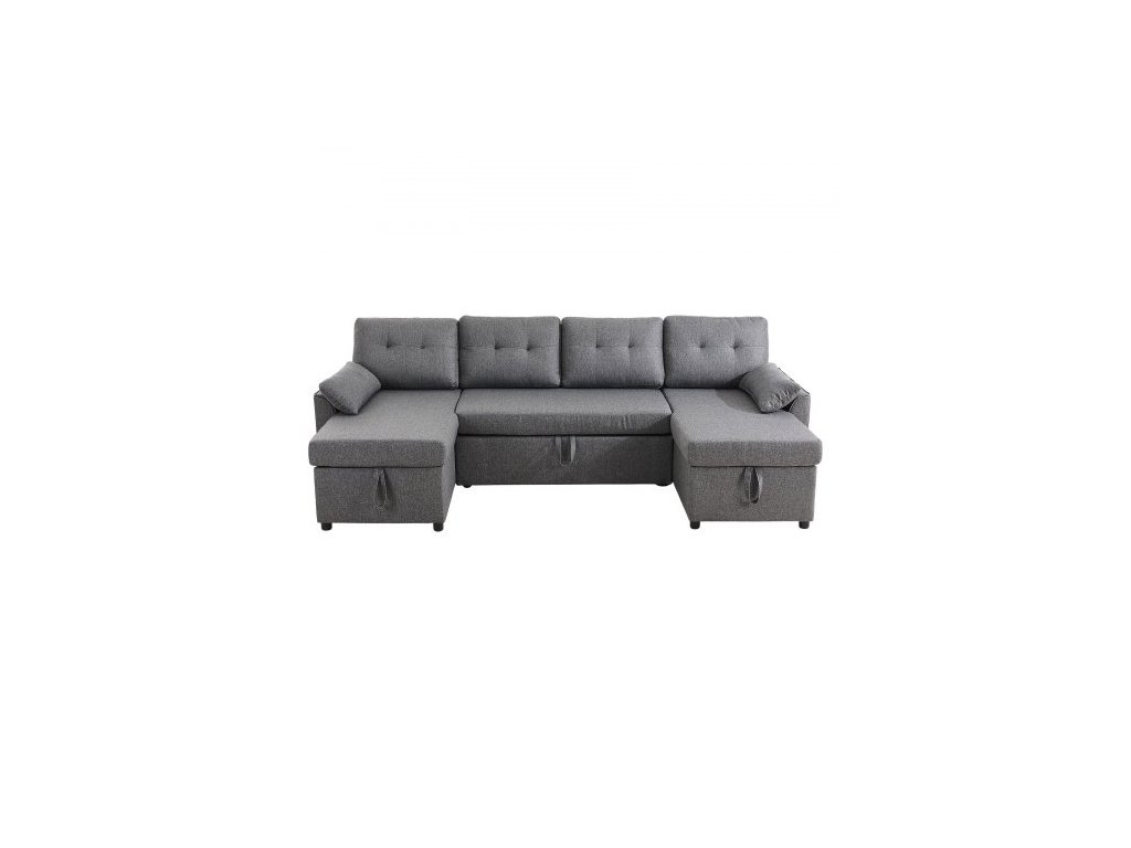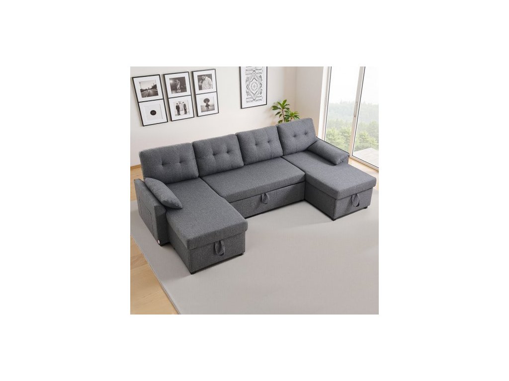 Rozkládací pohovka ve tvaru U, rozkládací pohovka se 2 bočními kapsami, 2 polštáři a dvoulůžkovou lenoškou, 6místná rozkládací pohovka s velkým úložným prostorem do obývacího pokoje, bytu, kovový rám, šedáMultifunkční pohovka