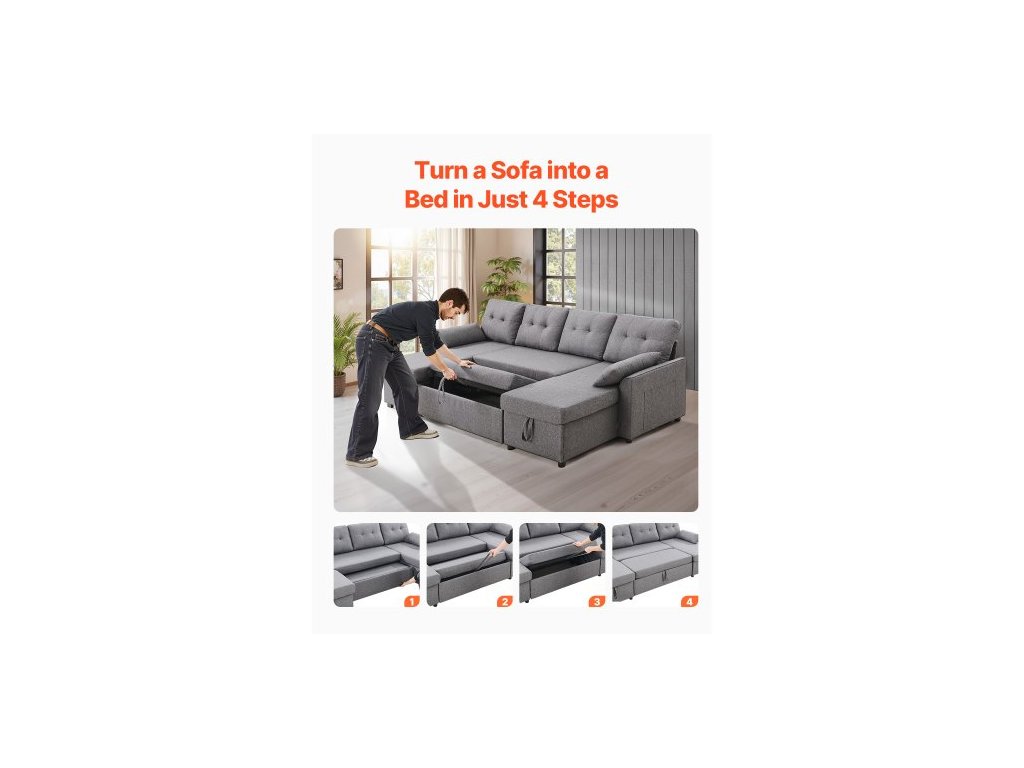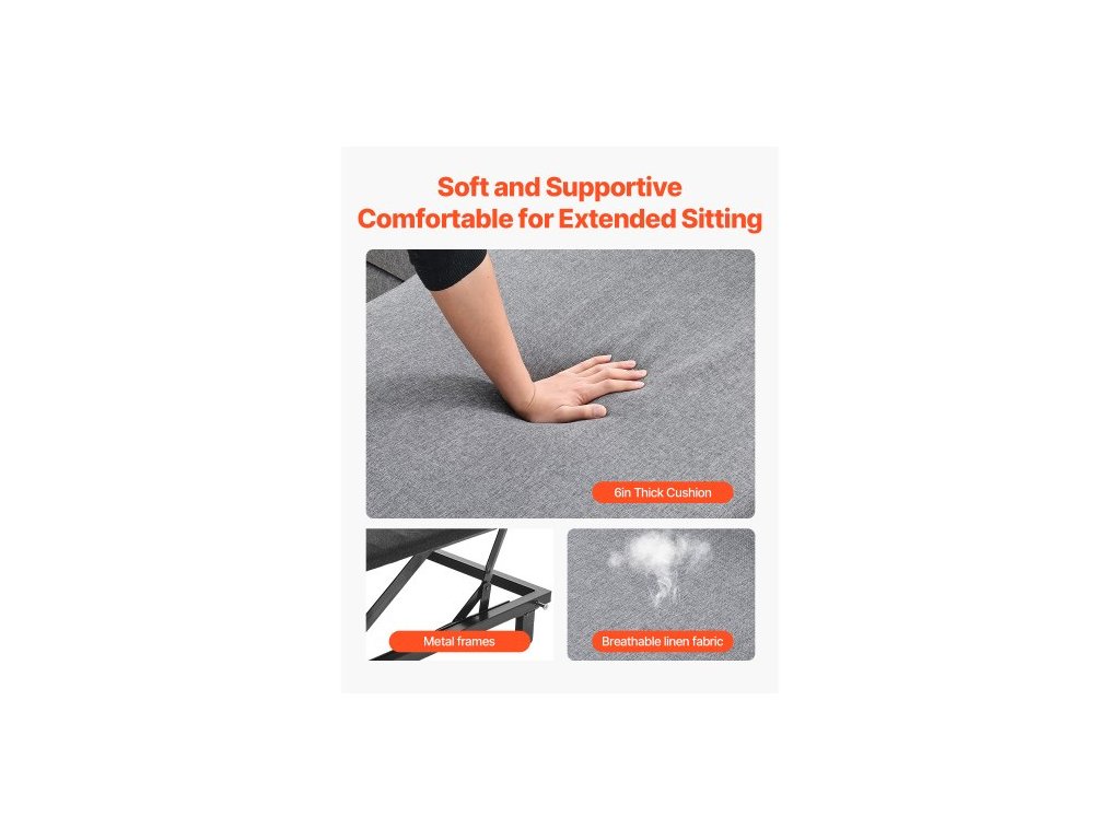 Šířka loketní opěrky: 15 cm, Nosnost: 726 kg, Tloušťka polštáře pohovky: 15,2 cm, Barva: šedá, Rozměry výrobku (pravý úhel): 287 × 145 × 91 cm, Číslo modelu položky: LW-0667-2T-11R-11L, Výška sedáku: 49 cm 48 cm, Materiál: Len; Pěna; Kovový rám; Laminovaná deska, Šířka sedáku pohovky (jednolůžko): 63,5 cm, Čistá hmotnost: 116,4 kg, Výška loketní opěrky: 59 cm