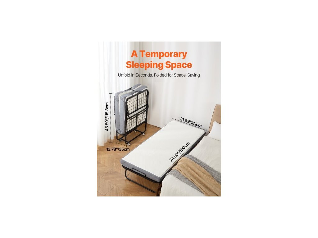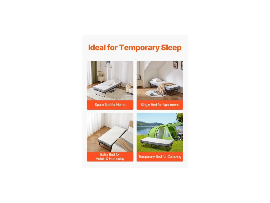 Rozkládací postel , skládací postel 31" x 75" s matrací 5", skládací postel velikosti Twin s robustním kovovým rámem a matrací z paměťové pěny, přenosná rozkládací postel pro dva s matrací, pro dospělé, hostyPohodlné použití
