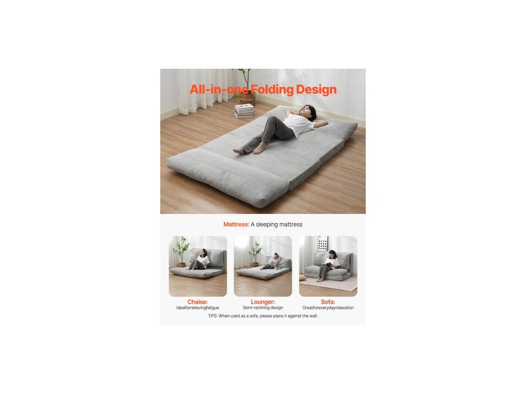 Rozkládací rozkládací pohovka , 3v1 skládací pohovka s pratelným potahem, 25D paměťová pěna s vysokou hustotou, rozkládací křeslo, futonová pohovka do obývacího pokoje, ložnice, pro hosty, světle šedá (plná)