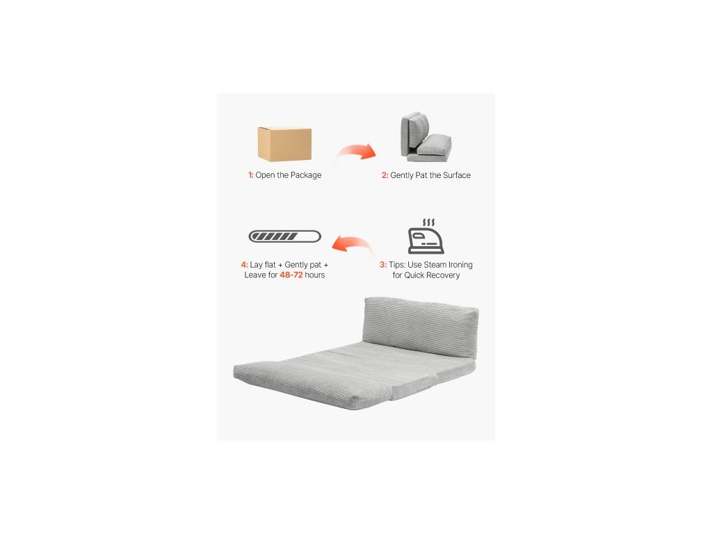 Skládací rozkládací pohovka , skládací gauč 3 v 1 s pratelným potahem, rozkládací křeslo z paměťové pěny s vysokou hustotou 25D, futonová pohovka do obývacího pokoje, ložnice, pro hosty, světle šedá (plná)Pěna s vysokou hustotou