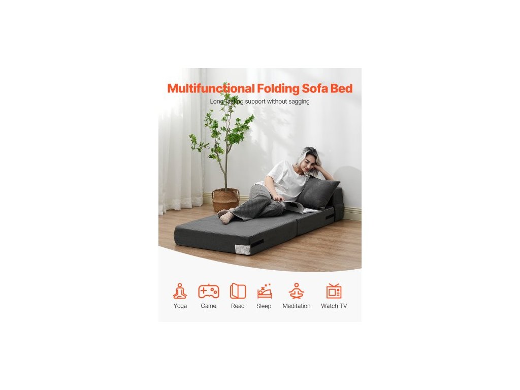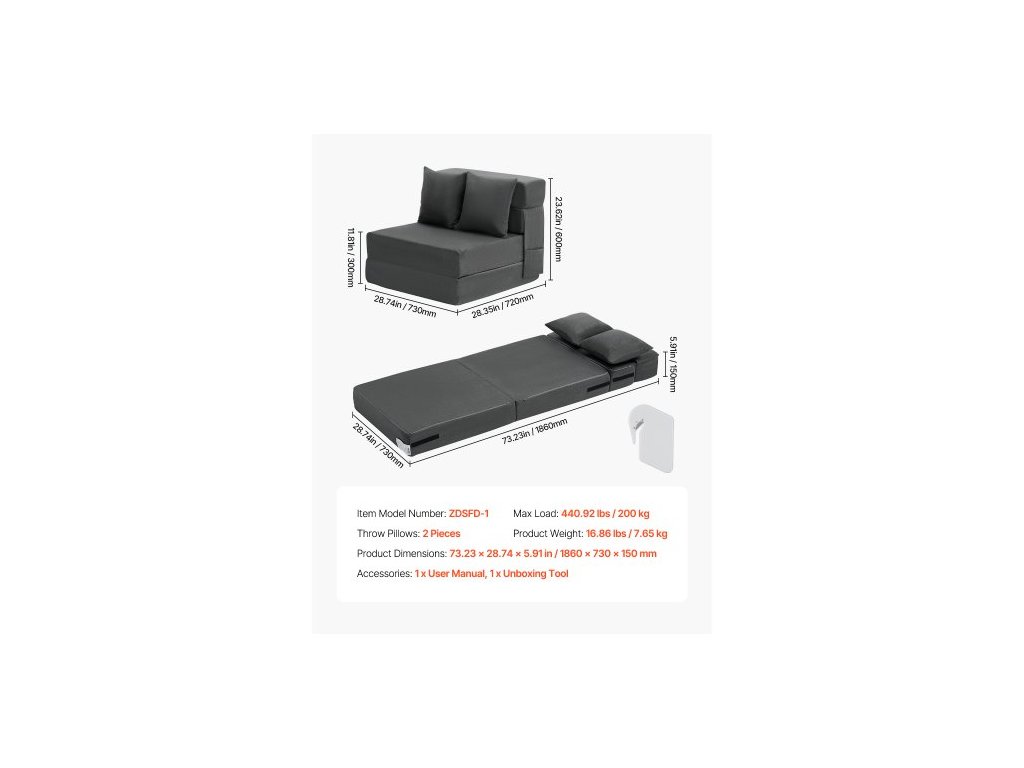 Skládací rozkládací pohovka , skládací gauč 3 v 1 se 2 polštáři a pratelným potahem, rozkládací křeslo z paměťové pěny s vysokou hustotou 25D, futonová pohovka do obývacího pokoje, ložnice, tmavě šedá (jednolůžko)Pěna s vysokou hustotou