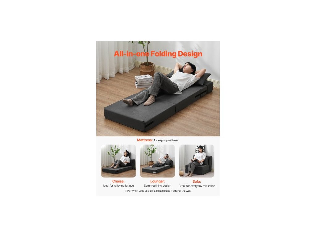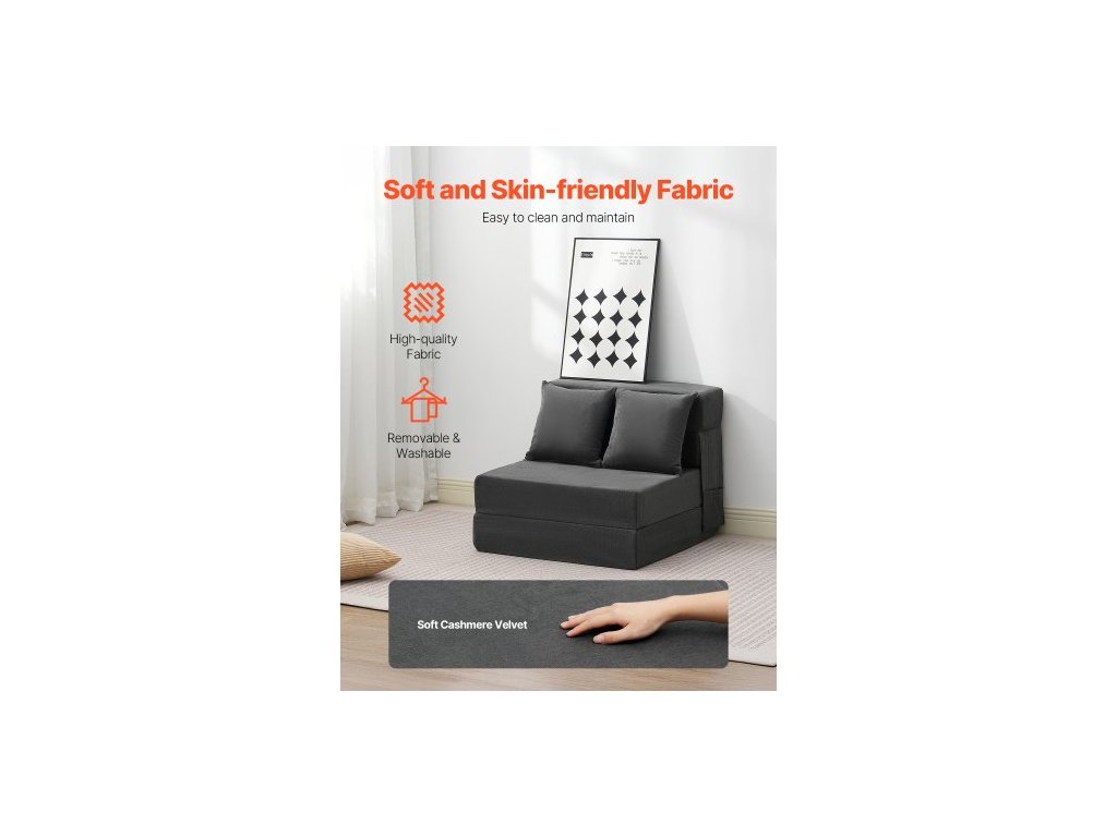Rozkládací rozkládací pohovka , skládací gauč 3 v 1 se 2 polštáři a pratelným potahem, rozkládací křeslo z paměťové pěny s vysokou hustotou 25D, rozkládací pohovka do obývacího pokoje a ložnice, tmavě šedá (jednolůžko)