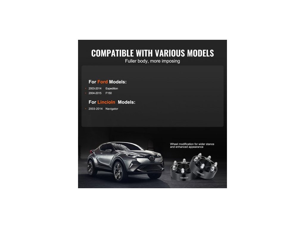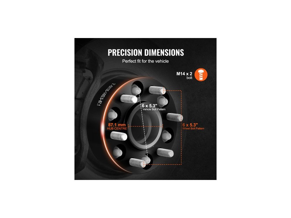 Rozpěrné podložky kol , adaptéry kol 2" 6"x5,3", kované podložky s 6 výstupky, 87,1 mm vrtání, rozpěrné podložky s centrickými čepy M14 x2, vhodné pro Ford Expedition, F150, Lincoln Navigator, 4 ks černéStabilnější otáčení